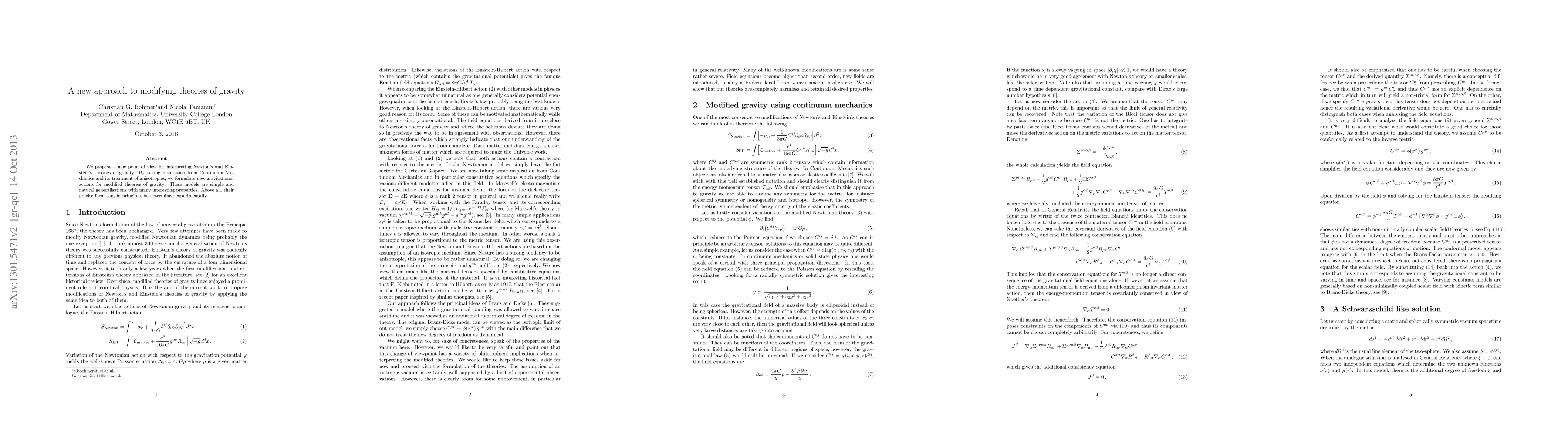 We propose a new point of view for interpreting Newton's and Einstein's theories of gravity. By taking inspiration from Continuum Mechanics and its treatment of anisotropies, we formulate new gravitational actions for modified theories of gravity. These models are simple and natural generalisations with many interesting properties. Above all, their precise form can, in principle, be determined experimentally.