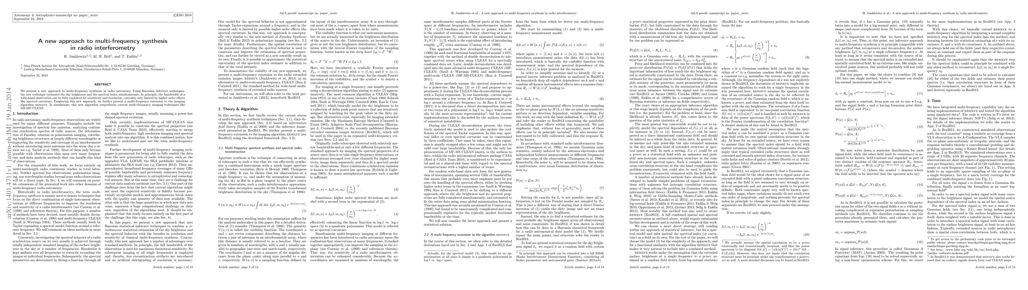 This paper introduces a novel Bayesian inference technique for multi-frequency synthesis in radio interferometry, enabling simultaneous estimation of sky brightness and spectral index. The new method extends the RESOLVE imaging algorithm and outperforms existing techniques like MS-MF-CLEAN in simulations.