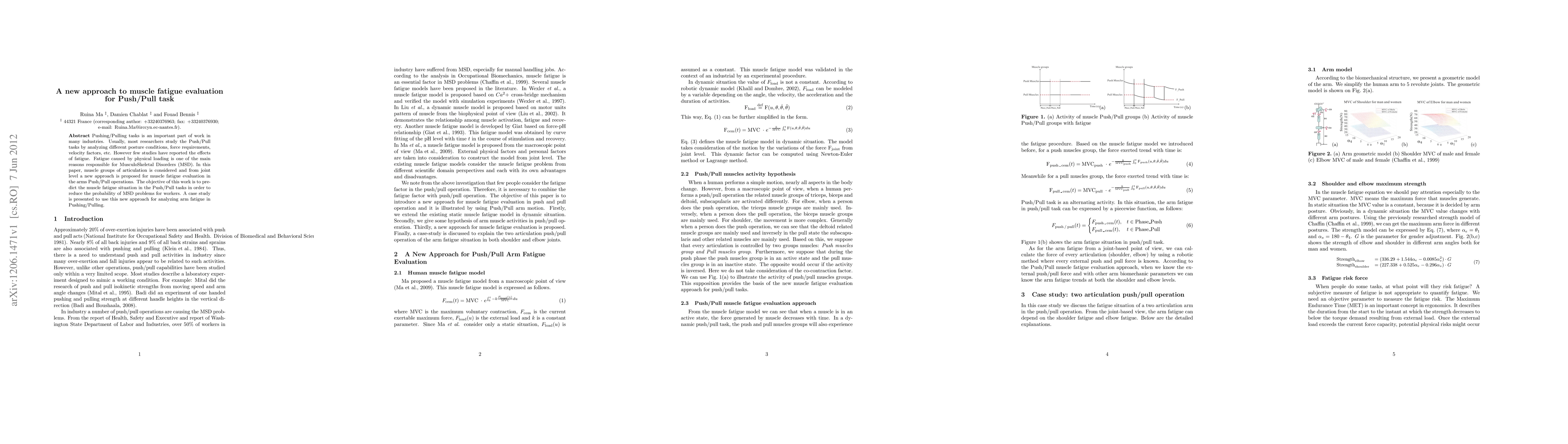 This paper proposes a novel method for evaluating muscle fatigue during Push/Pull tasks, focusing on joint-level muscle groups to predict fatigue and reduce MusculoSkeletal Disorders (MSD). A case study demonstrates the application of this new approach in analyzing arm fatigue in these operations.