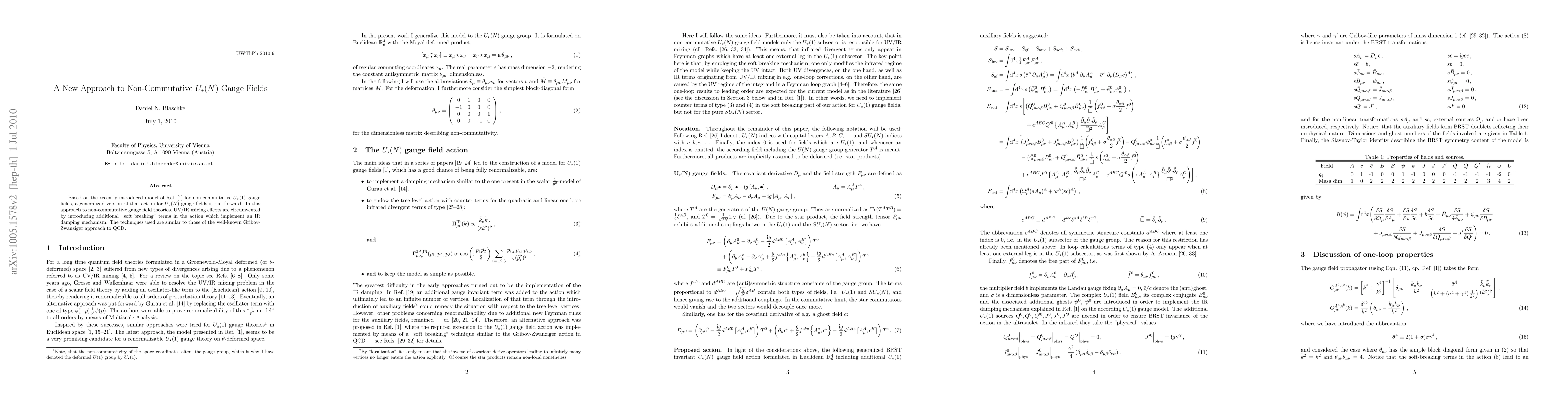 The paper presents a generalized action for non-commutative U*(N) gauge fields, incorporating soft-breaking terms to manage UV/IR mixing via an IR damping mechanism, inspired by the Gribov-Zwanziger approach in QCD.
