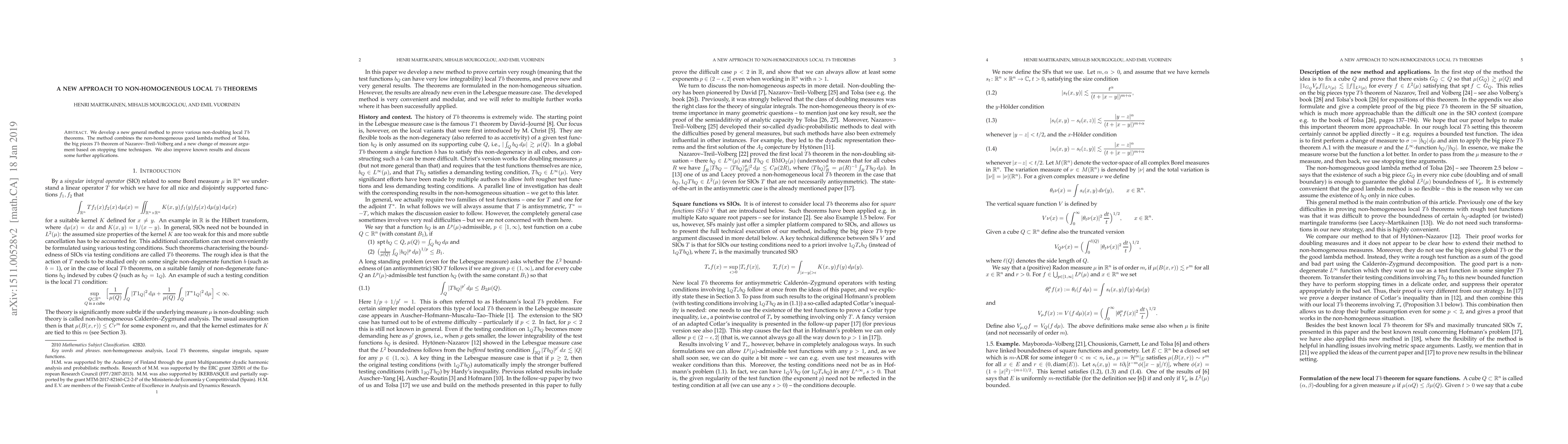 This paper introduces a novel method combining Tolsa's non-homogeneous good lambda approach, Nazarov-Treil-Volberg's big pieces Tb theorem, and a new change of measure technique using stopping time, to prove various non-doubling local Tb theorems, improving existing results and exploring further applications.