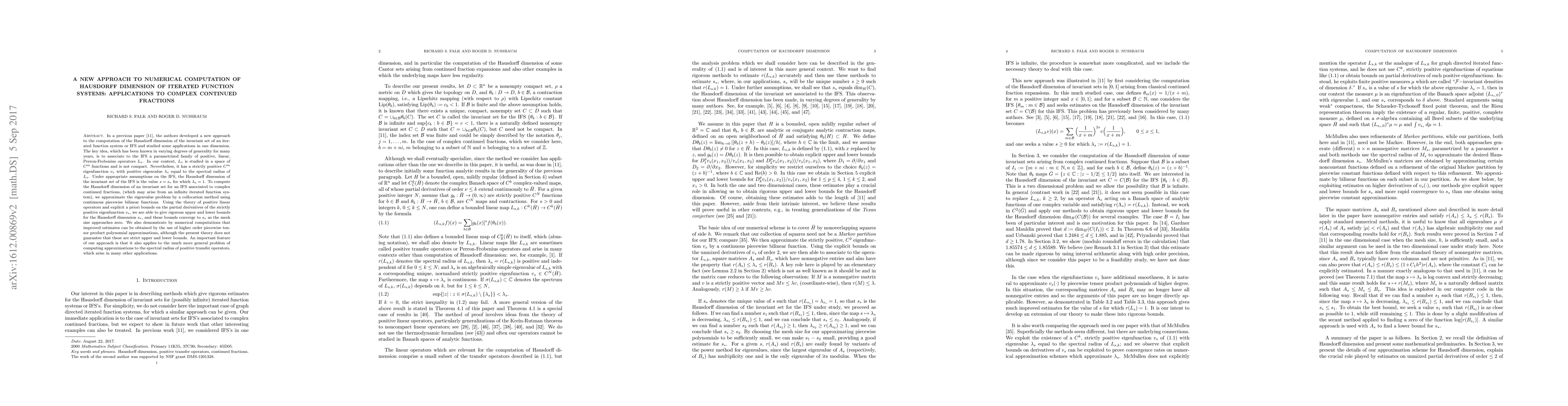 In a previous paper, dealing with "Applications in $\mathbb{R}^1$," the authors developed a new approach to the computation of the Hausdorff dimension of the invariant set of an iterated function system or IFS and studied some applications in one dimension. The key idea, which has been known in varying degrees of generality for many years, is to associate to the IFS a parametrized family of positive, linear, Perron-Frobenius operators $L_s$. In our context, $L_s$ is studied in a space of $C^m$ functions and is not compact. Nevertheless, it is has a strictly positive $C^m$ eigenfunction $v_s$ with positive eigenvalue $\lambda_s$ equal to the spectral radius of $L_s$. Under appropriate assumptions on the IFS, the Hausdorff dimension of the invariant set of the IFS is the value $s=s_*$ for which $\lambda_s =1$. To compute the Hausdorff dimension of an IFS associated to complex continued fractions, (which may arise from an infinite iterated function system), we again approximate the eigenvalue problem by a collocation method, but now using continuous piecewise bilinear functions. Using the theory of positive linear operators and explicit a priori bounds on the partial derivatives of the strictly positive eigenfunction $v_s$, we are able to give rigorous upper and lower bounds for the Hausdorff dimension $s_*$, and these bounds converge to $s_*$ as the mesh size approaches zero. We also demonstrate by numerical computations that improved estimates can be obtained by the use of higher order piecewise tensor product polynomial approximations, although the present theory does not guarantee that these are strict upper and lower bounds. An important feature of our approach is that it also applies to the much more general problem of computing approximations to the spectral radius of positive transfer operators, which arise in many other applications.