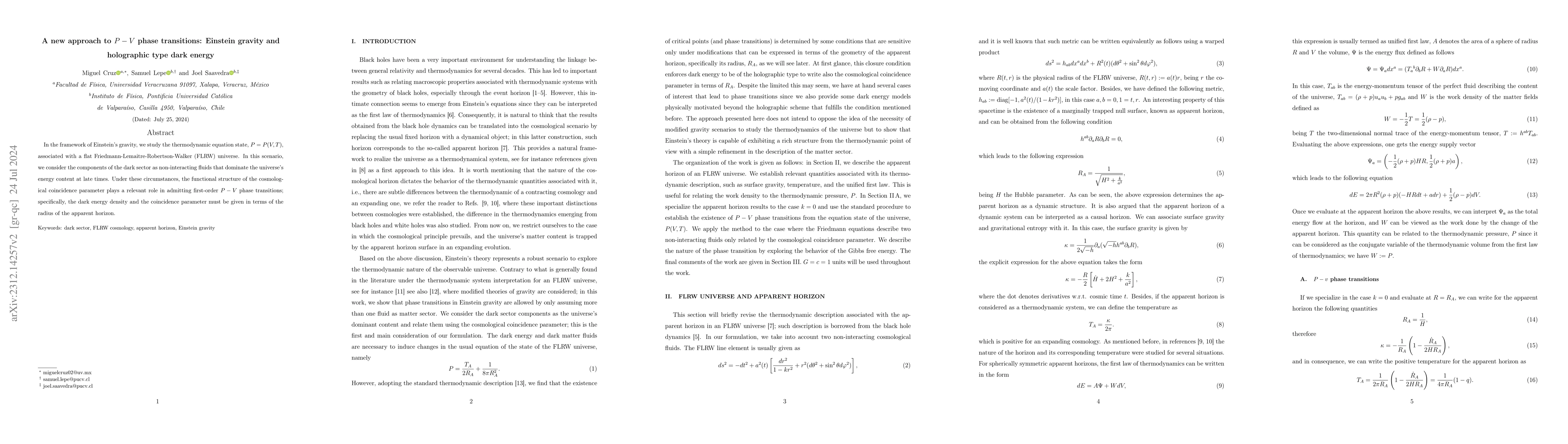 In the framework of Einstein gravity, we study the thermodynamic equation state, $P=P(V,T)$, associated with a flat Friedmann-Lemaitre-Robertson-Walker (FLRW) universe with two dominant non-interacting fluids at late times related by the cosmological coincidence parameter. We find that under these circumstances, first-order $P-V$ phase transitions are admitted if the dark energy density and the cosmological coincidence parameter can be related to the geometry of the apparent horizon.
