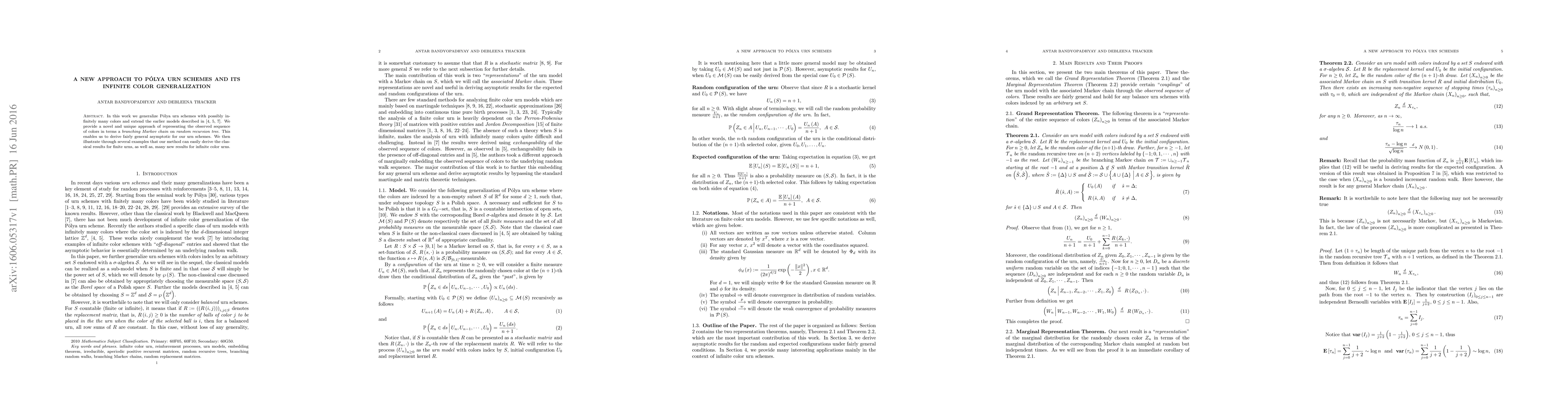 Researchers develop a new approach to Polya urn schemes that can handle infinite colors, using a branching Markov chain on random recursion trees to derive asymptotic results.