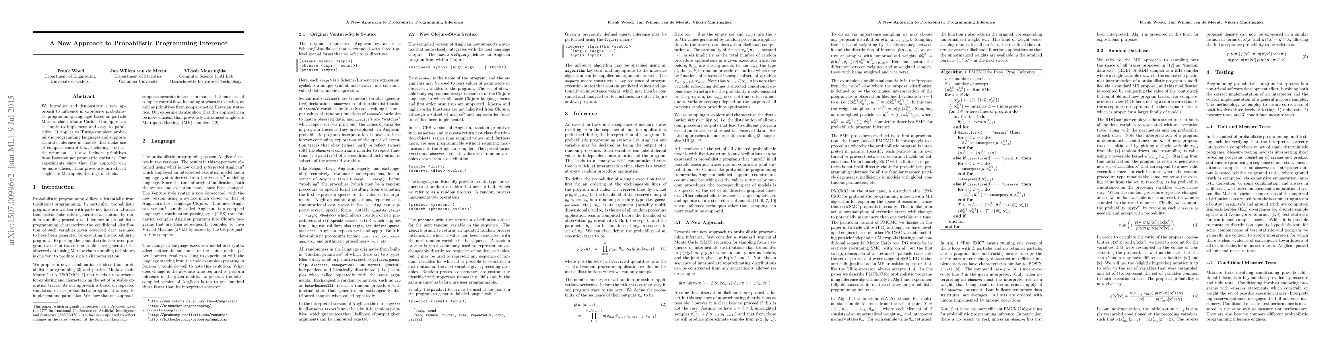This paper presents a novel particle Markov chain Monte Carlo method for inference in Turing-complete probabilistic programming languages, demonstrating its efficiency and parallelizability, and showing it outperforms traditional single-site Metropolis-Hastings methods.