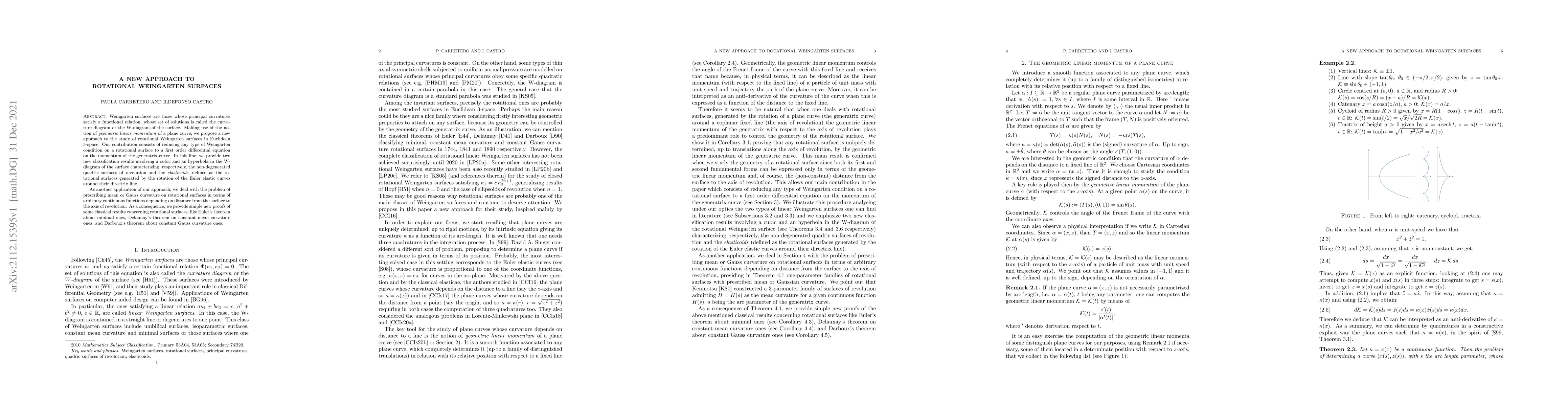 This paper introduces a novel method for studying rotational Weingarten surfaces by linking geometric linear momentum to principal curvatures, reducing Weingarten conditions to first-order differential equations, and classifying surfaces like non-degenerate quadrics and elasticoids. It also offers new proofs for classical theorems on rotational surfaces.