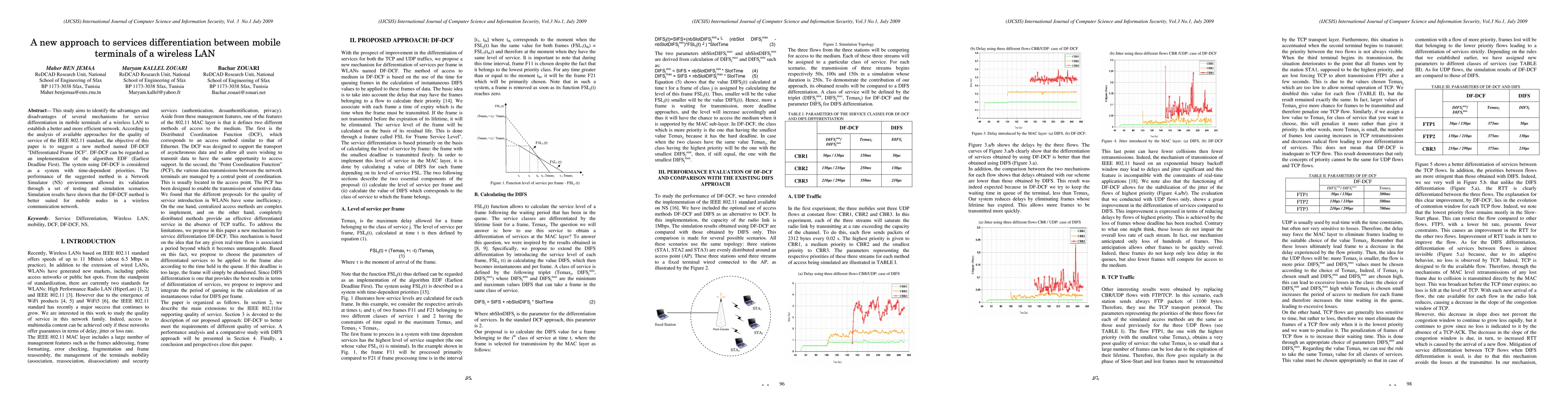 This study aims to identify the advantages and disadvantages of several mechanisms for service differentiation in mobile terminals of a wireless LAN to establish a more better and more optimal. At the end of the analysis of available approaches for the quality of service of the IEEE 802.11 standard, the objective of this paper is to suggest a new method named DF-DCF Differentiated Frame DCF. The performance of the suggested method in a Network Simulator (NS) environment allowed its validation through a set of testing and simulation scenarios. Simulation results have shown that the DF-DCF method is better suited for mobile nodes in a wireless communication network.