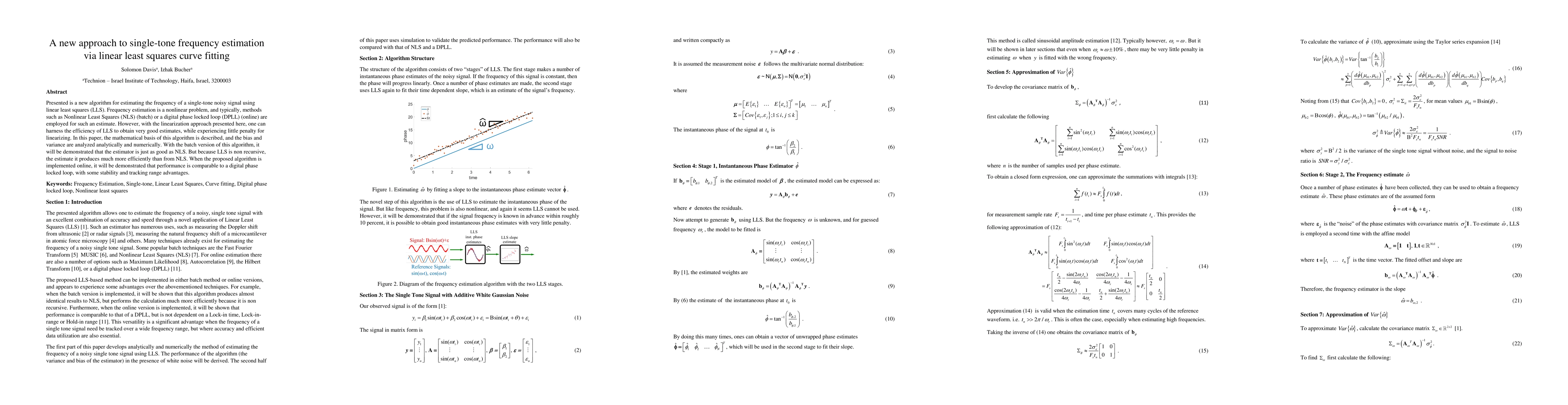 Presented is a new algorithm for estimating the frequency of a single-tone noisy signal using linear least squares (LLS). Frequency estimation is a nonlinear problem, and typically, methods such as Nonlinear Least Squares (NLS) (batch) or a digital phase locked loop (DPLL) (online) are employed for such an estimate. However, with the linearization approach presented here, one can harness the efficiency of LLS to obtain very good estimates, while experiencing little penalty for linearizing. In this paper, the mathematical basis of this algorithm is described, and the bias and variance are analyzed analytically and numerically. With the batch version of this algorithm, it will be demonstrated that the estimator is just as good as NLS. But because LLS is non recursive, the estimate it produces much more efficiently than from NLS. When the proposed algorithm is implemented online, it will be demonstrated that performance is comparable to a digital phase locked loop, with some stability and tracking range advantages.