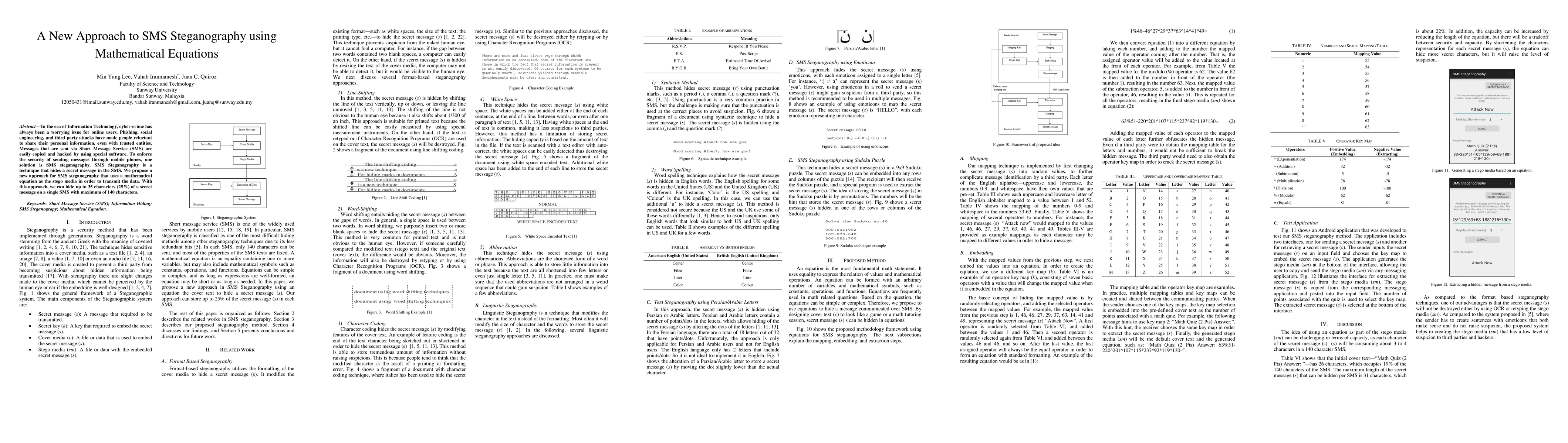 A new SMS steganography approach using mathematical equations is proposed