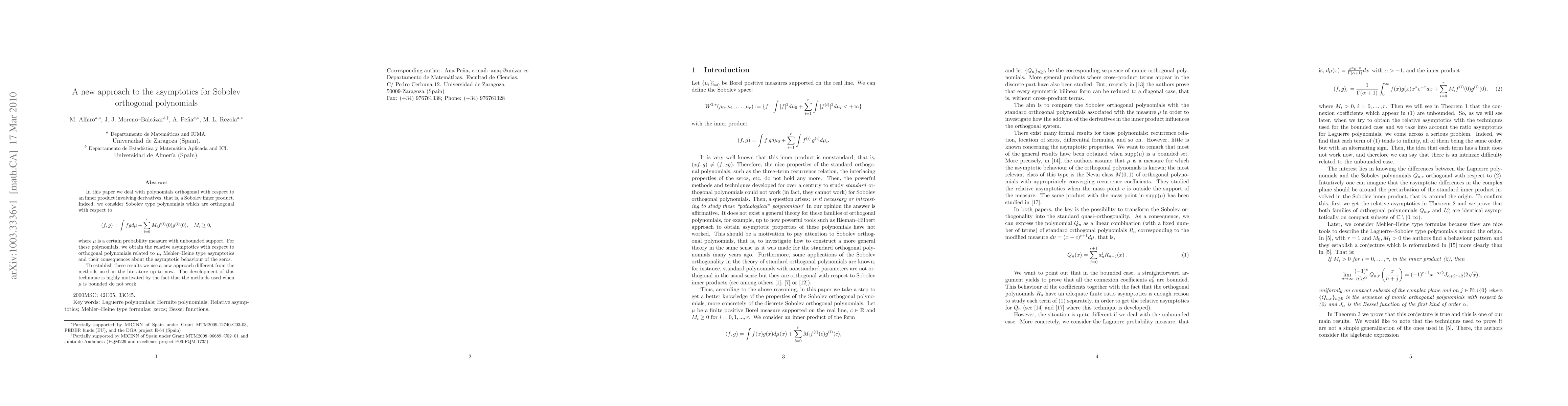 This paper introduces a novel method for determining the asymptotics of Sobolev orthogonal polynomials defined by a Sobolev inner product involving derivatives. It establishes relative asymptotics and Mehler-Heine type behaviors for these polynomials, which differ from conventional methods due to the unbounded support of the underlying probability measure.