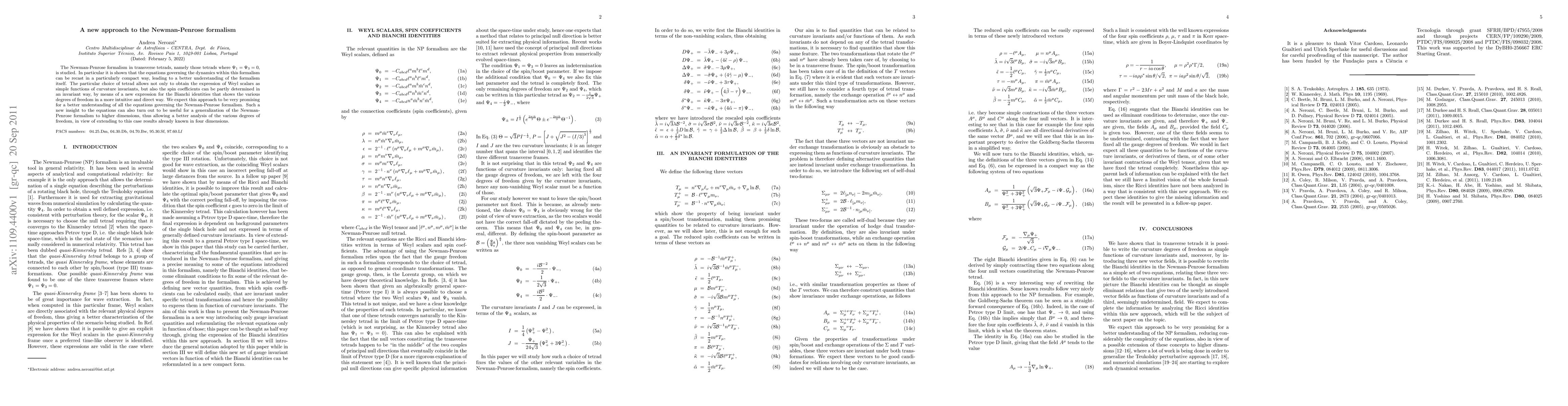 This paper introduces a compact reformulation of the Newman-Penrose formalism in transverse tetrads, simplifying the dynamics and improving understanding by linking Weyl scalars and spin coefficients to curvature invariants and revealing degrees of freedom more intuitively.