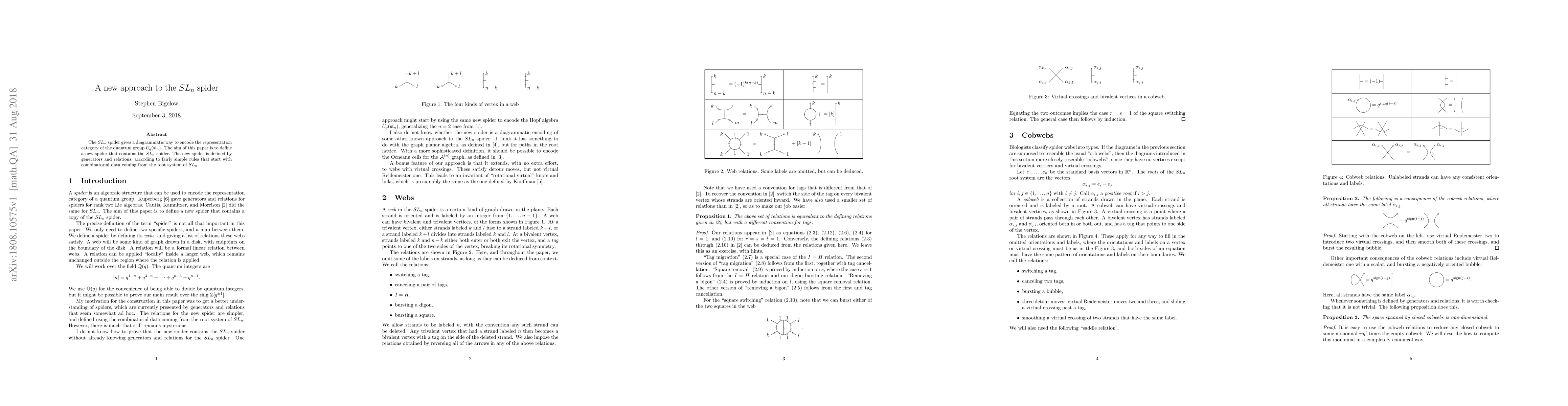 The $SL_n$ spider gives a diagrammatic way to encode the representation category of the quantum group $U_q(sl_n)$. The aim of this paper is to define a new spider that contains the $SL_n$ spider. The new spider is defined by generators and relations, according to fairly simple rules that start with combinatorial data coming from the root system of $SL_n$.