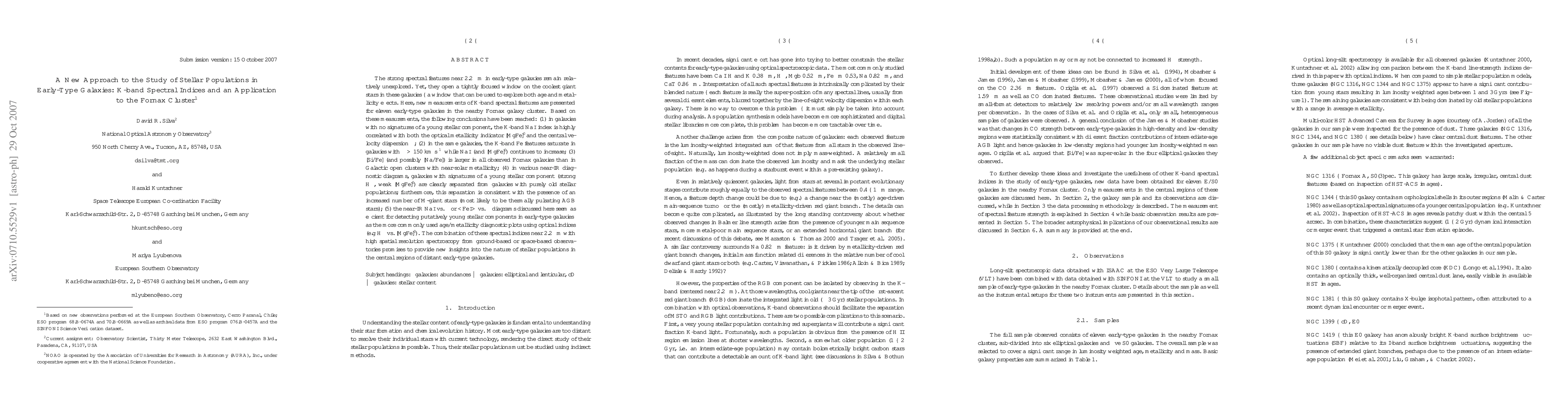 This paper presents new K-band spectral measurements for early-type galaxies in the Fornax cluster, showing that the K-band Na I index correlates with metallicity and velocity dispersion in old galaxies, while Fe features saturate at high velocity dispersions. It also finds that near-IR diagrams are effective at identifying galaxies with young stellar components.