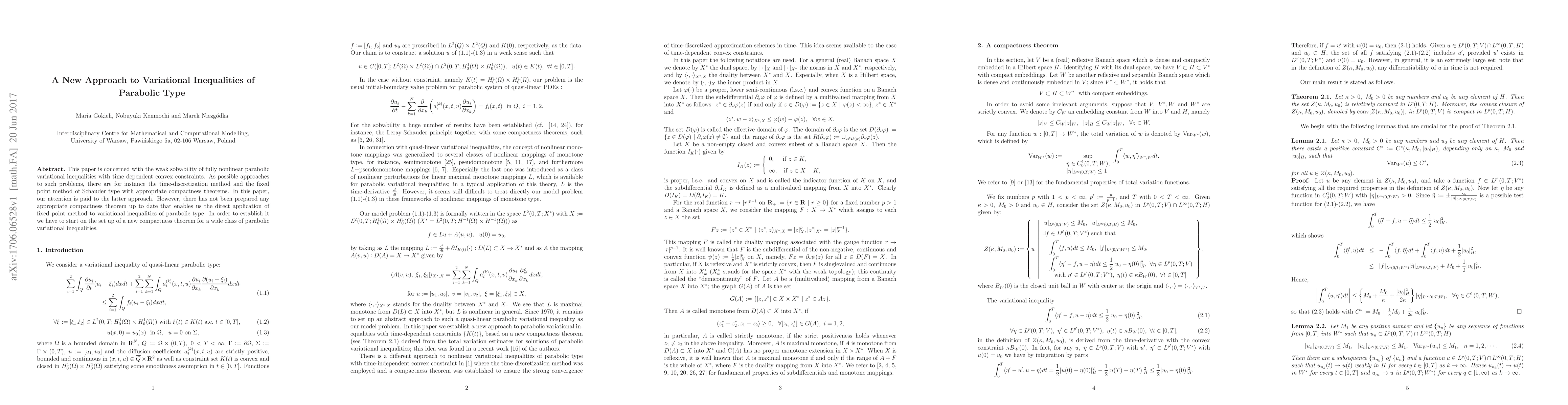 This paper is concerned with the weak solvability of fully nonlinear parabolic variational inequalities with time dependent convex constraints. As possible approaches to such problems, there are for instance the time-discretization method and the fixed point method of Schauder type with appropriate compactness theorems. In this paper, our attention is paid to the latter approach. However, there has not been prepared any appropriate compactness theorem up to date that enables us the direct application of fixed point method to variational inequalities of parabolic type. In order to establish it we have to start on the set up of a new compactness theorem for a wide class of parabolic variational inequalities.