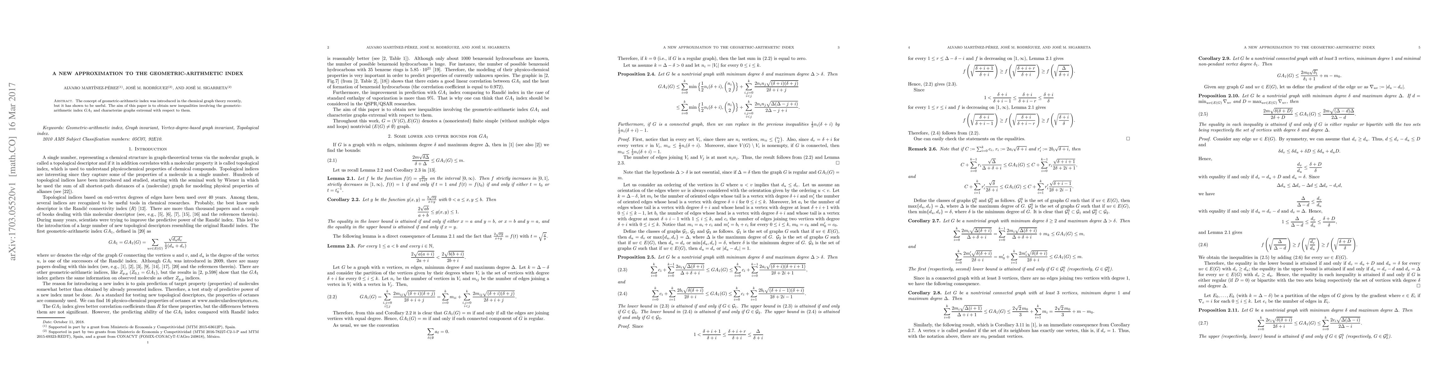 Summary: This paper proposes new inequalities for the geometric-arithmetic index $GA_1$ in chemical graph theory and identifies graphs that exhibit extremal values relative to these inequalities.