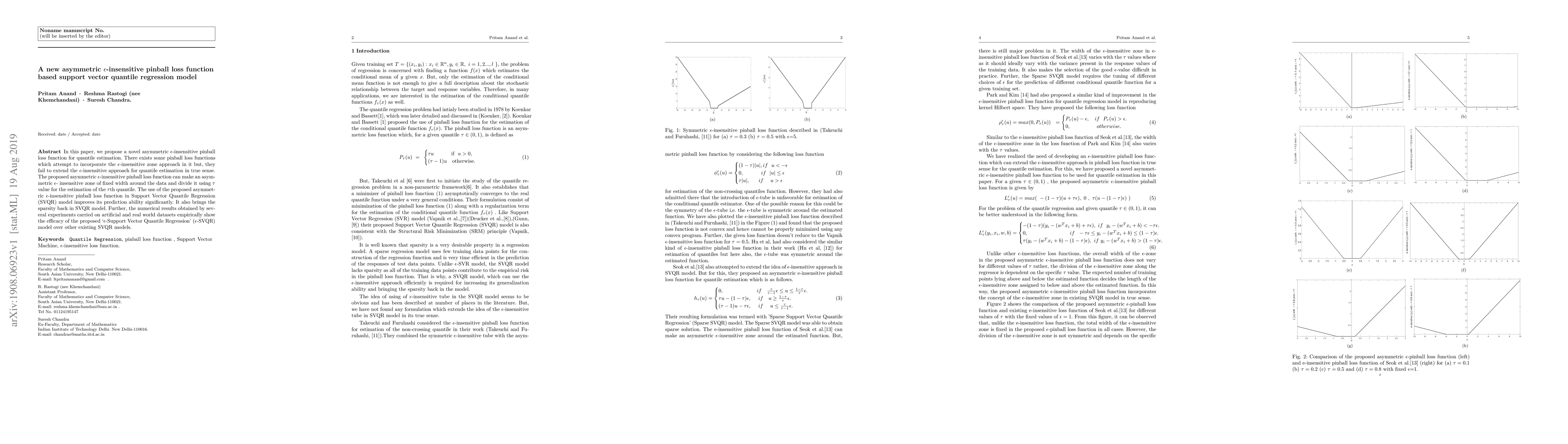 This paper introduces a new asymmetric $\epsilon$-insensitive pinball loss function for quantile estimation in Support Vector Quantile Regression (SVQR) models, significantly improving prediction accuracy and sparsity. Experimental results demonstrate the superior performance of the proposed $\epsilon$-SVQR model over existing SVQR models.