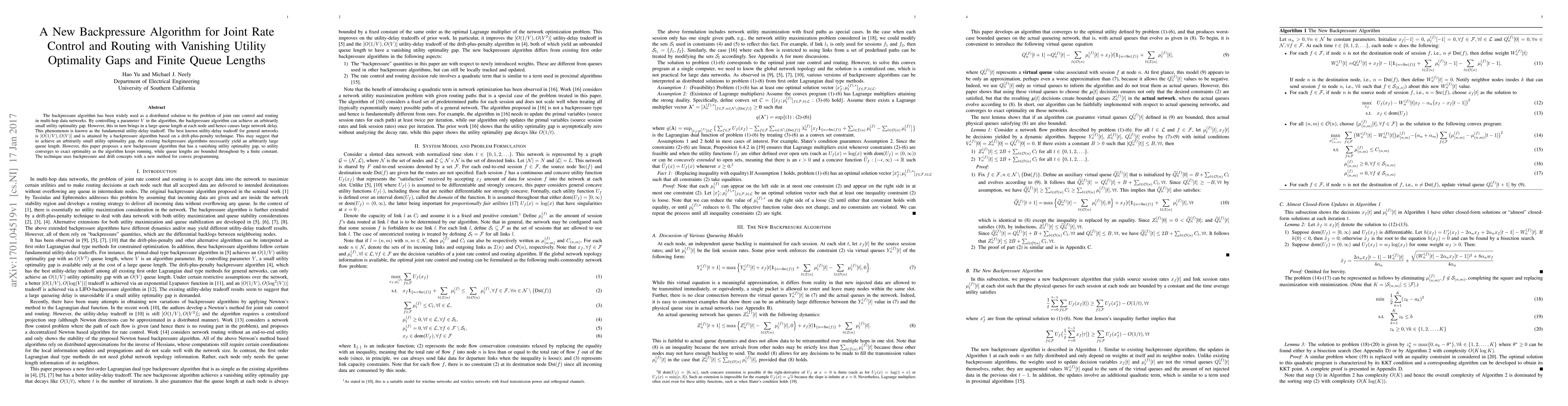 This paper introduces a novel backpressure algorithm that achieves near-optimal utility with finite queue lengths, overcoming the fundamental utility-delay tradeoff by using a new convex programming method. The new algorithm maintains a vanishing utility optimality gap while ensuring bounded queue lengths.