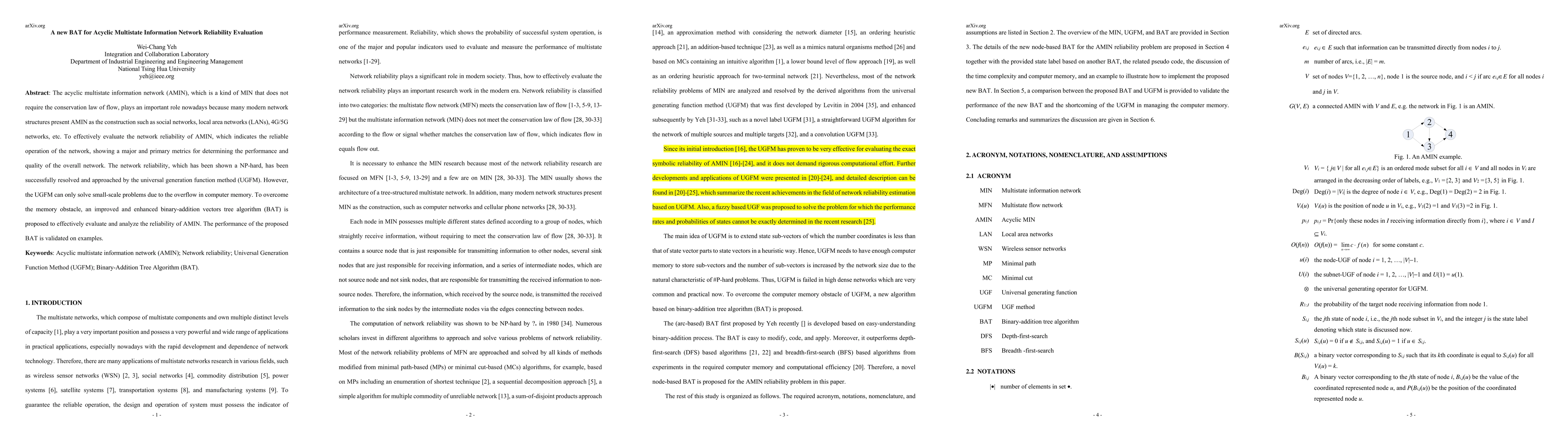 This paper proposes an enhanced binary-addition vectors tree algorithm (BAT) to effectively evaluate the reliability of acyclic multistate information networks (AMIN), addressing the computational limitations of existing methods like the universal generation function method (UGFM). The new BAT is validated to provide reliable performance analysis for large-scale AMINs.