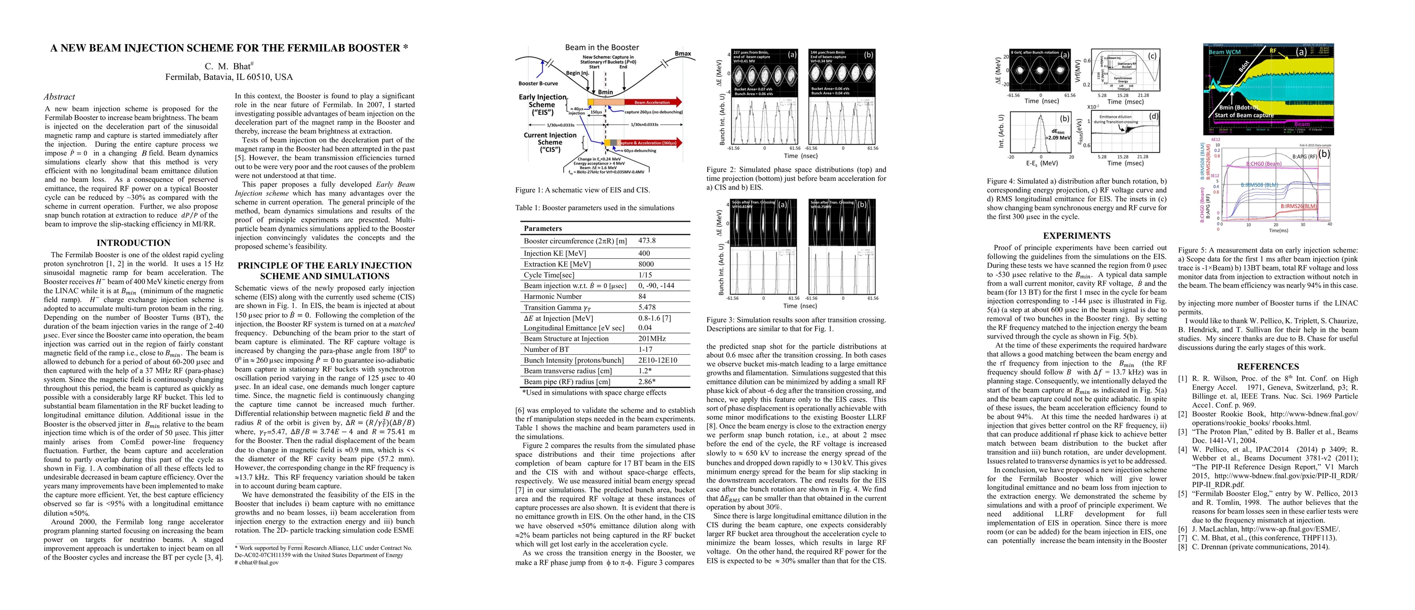 This paper proposes a new beam injection scheme for the Fermilab Booster that enhances beam brightness by injecting the beam during the deceleration phase of a sinusoidal magnetic ramp, maintaining Pdot=0 in a changing B field, which preserves emittance and results in no beam loss. The method reduces required RF power by ~30% and suggests snap bunch rotation for improved slip-stacking efficiency.