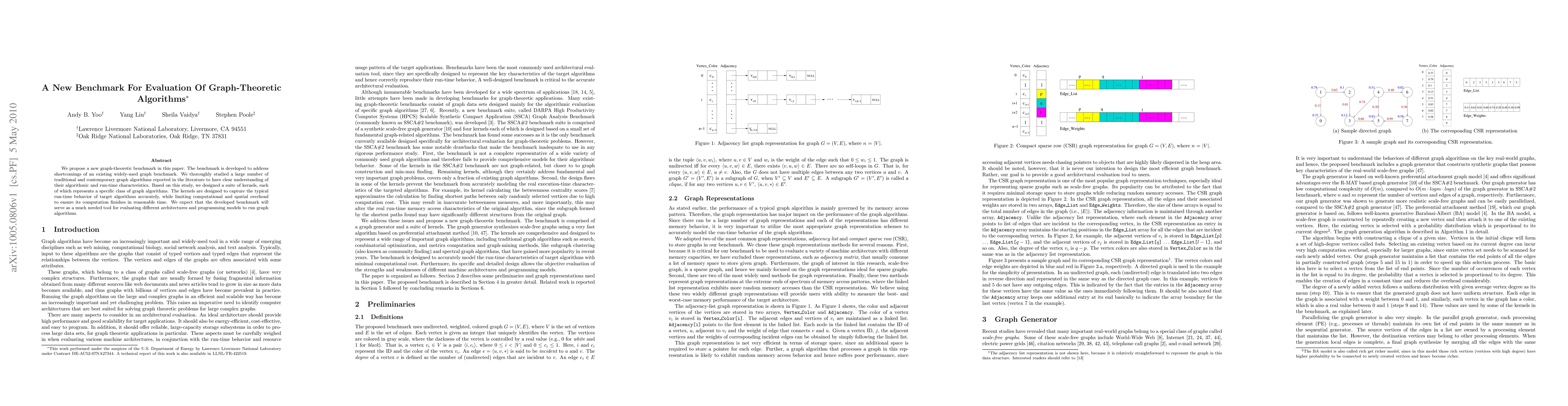 We propose a new graph-theoretic benchmark in this paper. The benchmark is developed to address shortcomings of an existing widely-used graph benchmark. We thoroughly studied a large number of traditional and contemporary graph algorithms reported in the literature to have clear understanding of their algorithmic and run-time characteristics. Based on this study, we designed a suite of kernels, each of which represents a specific class of graph algorithms. The kernels are designed to capture the typical run-time behavior of target algorithms accurately, while limiting computational and spatial overhead to ensure its computation finishes in reasonable time. We expect that the developed benchmark will serve as a much needed tool for evaluating different architectures and programming models to run graph algorithms.