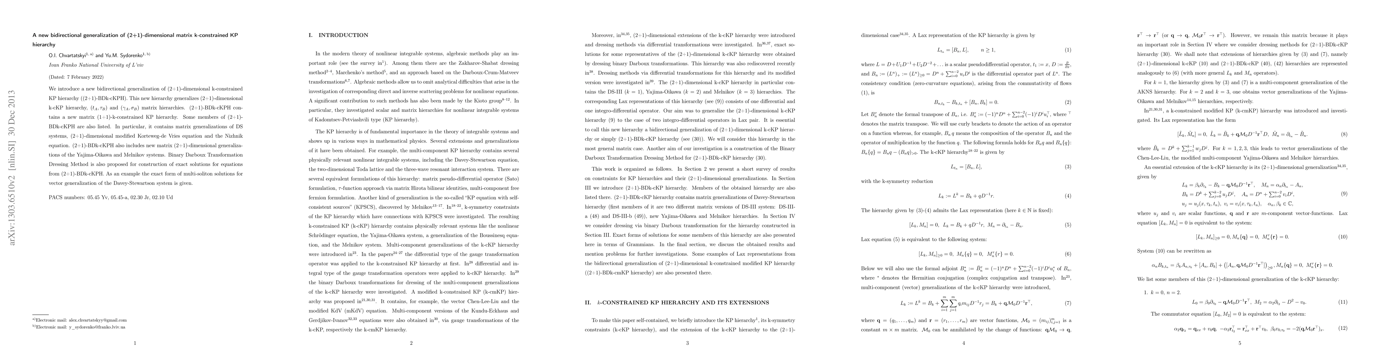 We introduce a new bidirectional generalization of (2+1)-dimensional k-constrained KP hierarchy ((2+1)-BDk-cKPH). This new hierarchy generalizes (2+1)-dimensional k-cKP hierarchy, $(t_A,\tau_B)$ and $(\gamma_A,\sigma_B)$ matrix hierarchies. (2+1)-BDk-cKPH contains a new matrix (1+1)-k-constrained KP hierarchy. Some members of (2+1)-BDk-cKPH are also listed. In particular, it contains matrix generalizations of DS systems, (2+1)-dimensional modified Korteweg-de Vries equation and the Nizhnik equation. (2+1)-BDk-cKPH also includes new matrix (2+1)-dimensional generalizations of the Yajima-Oikawa and Melnikov systems. Binary Darboux Transformation Dressing Method is also proposed for construction of exact solutions for equations from (2+1)-BDk-cKPH. As an example the exact form of multi-soliton solutions for vector generalization of the Davey-Stewartson system is given.