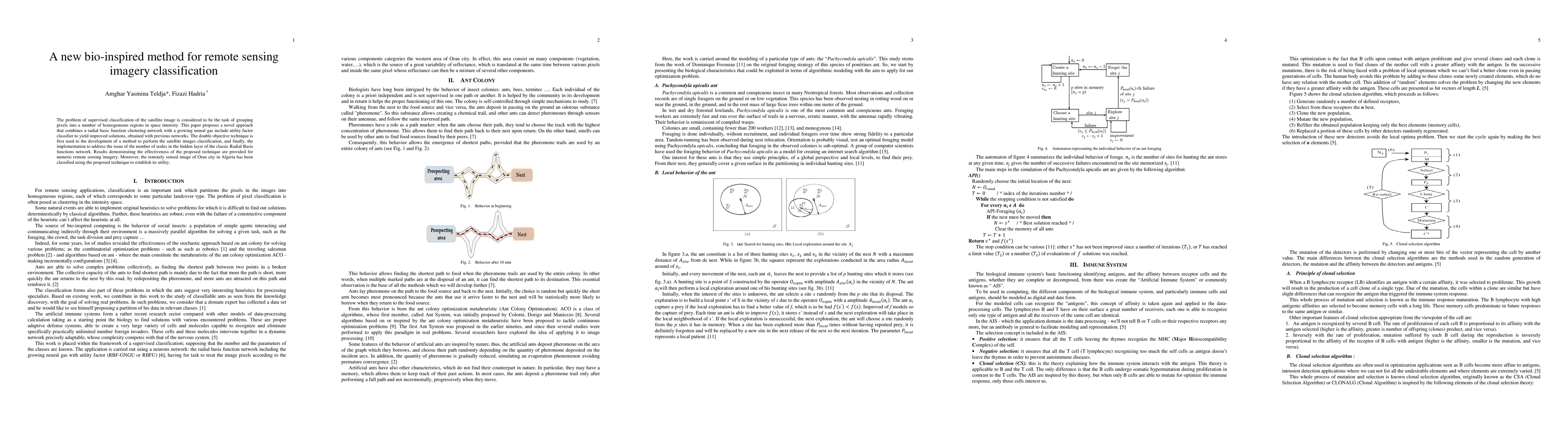 The problem of supervised classification of the satellite image is considered to be the task of grouping pixels into a number of homogeneous regions in space intensity. This paper proposes a novel approach that combines a radial basic function clustering network with a growing neural gas include utility factor classifier to yield improved solutions, obtained with previous networks. The double objective technique is first used to the development of a method to perform the satellite images classification, and finally, the implementation to address the issue of the number of nodes in the hidden layer of the classic Radial Basis functions network. Results demonstrating the effectiveness of the proposed technique are provided for numeric remote sensing imagery. Moreover, the remotely sensed image of Oran city in Algeria has been classified using the proposed technique to establish its utility.