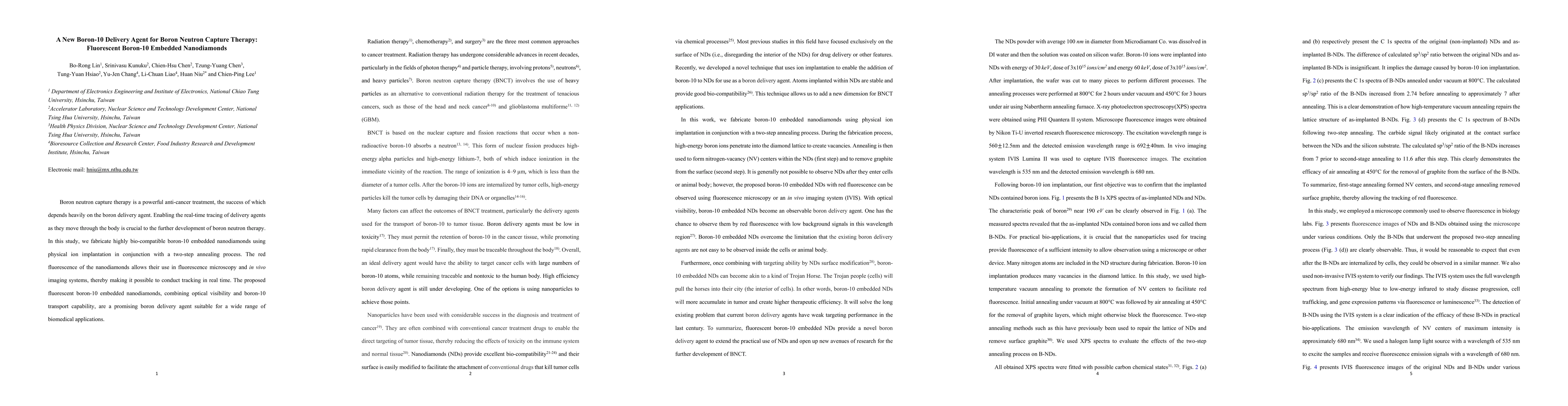 This study develops fluorescent boron-10 embedded nanodiamonds for real-time tracking in boron neutron capture therapy, utilizing their red fluorescence for in vivo imaging and fluorescence microscopy. The bio-compatible nanodiamonds, created via ion implantation and annealing, offer a promising delivery agent for cancer treatment.