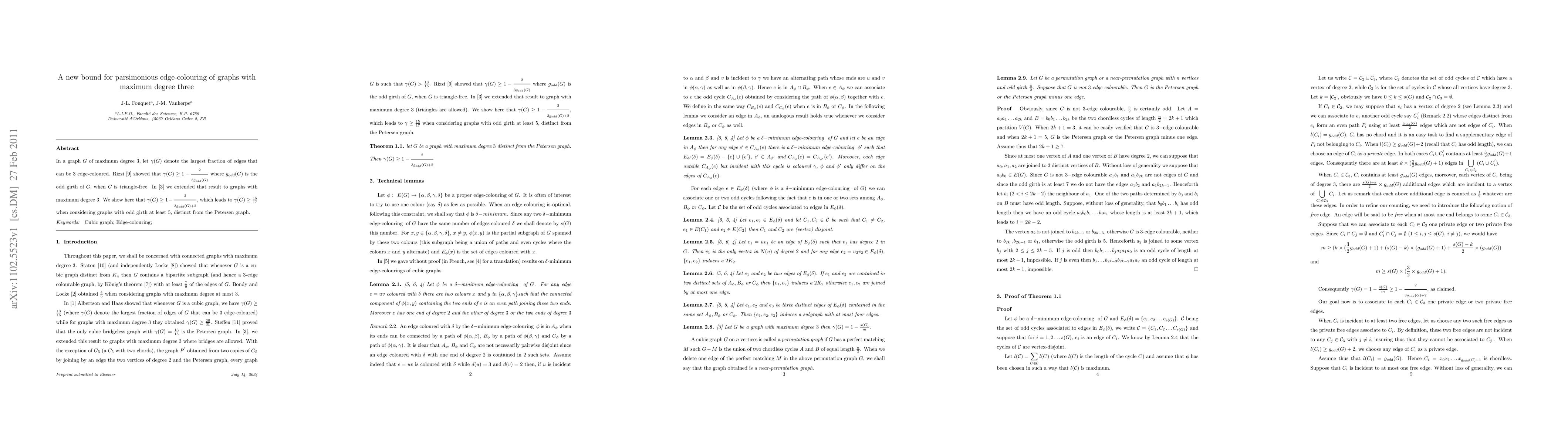 Researchers improved a bound on how many edges can be 3-coloured in graphs with maximum degree three, finding that at least 15/17 edges can be coloured when the graph has an odd girth of at least five.
