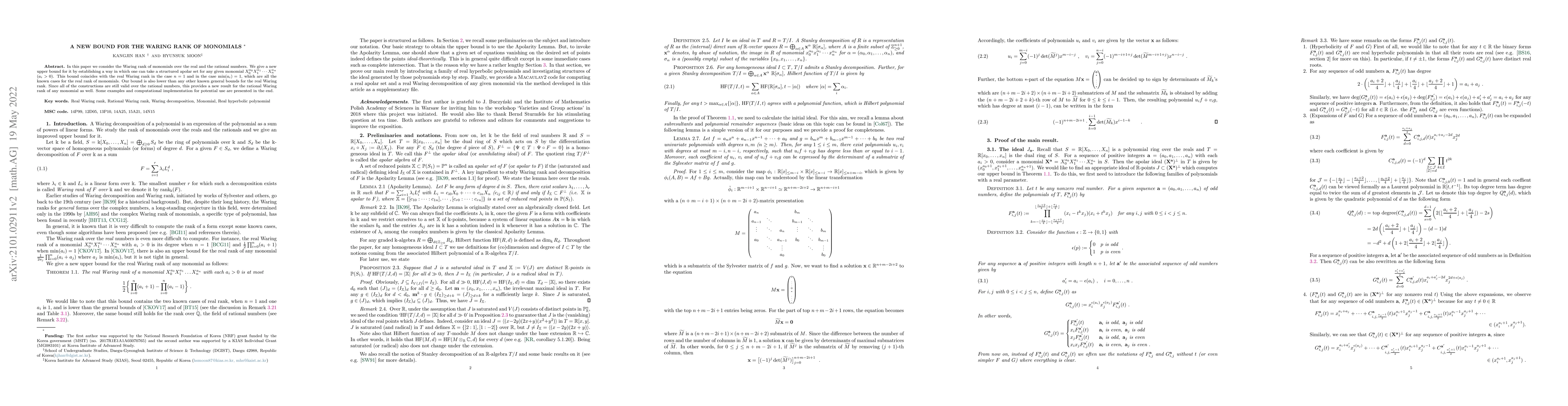 This paper introduces a new upper bound for the real Waring rank of monomials by utilizing structured apolar sets. The new bound matches existing known results for specific cases and is lower than other general bounds, extending similarly to provide a new result for the rational Waring rank. Examples and computational methods are also discussed.
