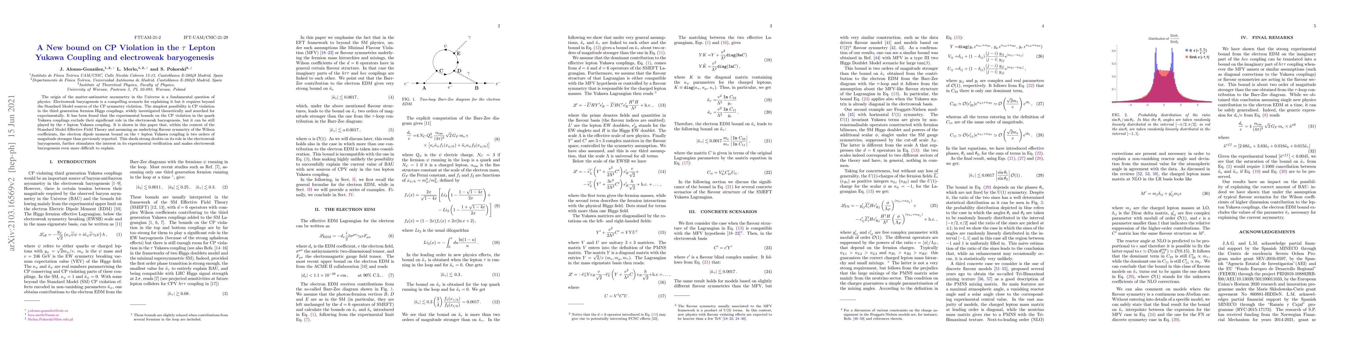 This paper establishes a significantly tighter bound on CP violation in the $\tau$ lepton Yukawa coupling, casting doubt on its role in electroweak baryogenesis and complicating the explanation of the matter-antimatter asymmetry in the Universe. The new bound, derived from electron dipole moment constraints, significantly reduces the potential contribution of this coupling to the required CP violation.
