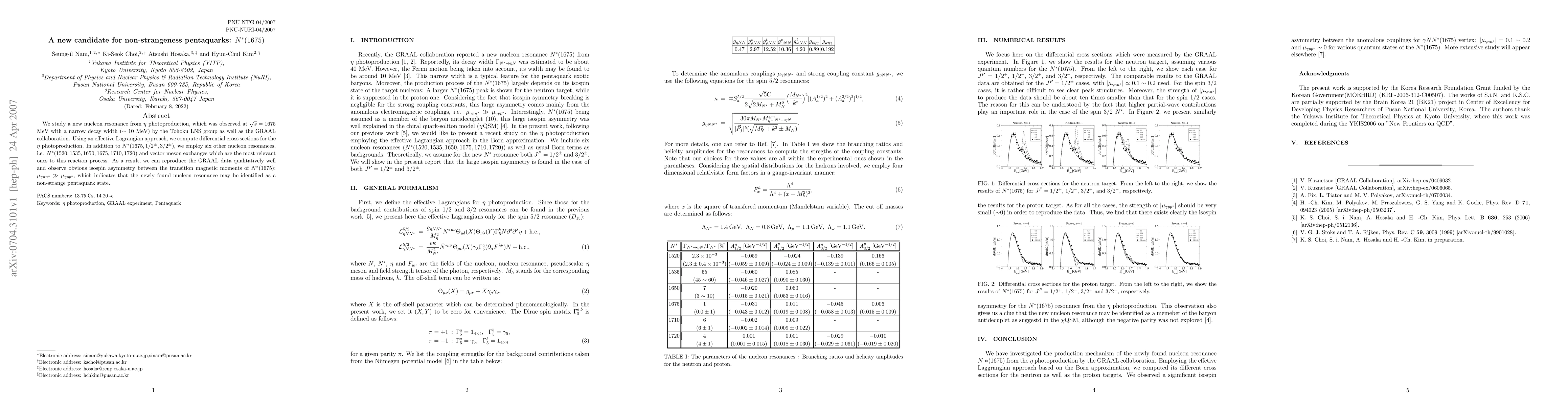 We study a new nucleon resonance from eta photoproduction, which was observed at sqrt{s}=1675 MeV with a narrow decay width (~10 MeV) by the Tohoku LNS group as well as the GRAAL collaboration. Using an effective Lagrangian approach, we compute differential cross sections for the eta photoproduction. In addition to N*(1675,1/2+-,3/2+-), we employ six other nucleon resonances, i.e. N*(1520,1535,1650,1675,1710,1720) and vector meson exchanges which are the most relevant ones to this reaction process. As a result, we can reproduce the GRAAL data qualitatively well and observe obvious isospin asymmetry between the transition magnetic moments of N*(1675): mu_{gamma nn*} >> mu_{gamma pp*}, which indicates that the newly found nucleon resonance may be identified as a non-strange pentaquark state.