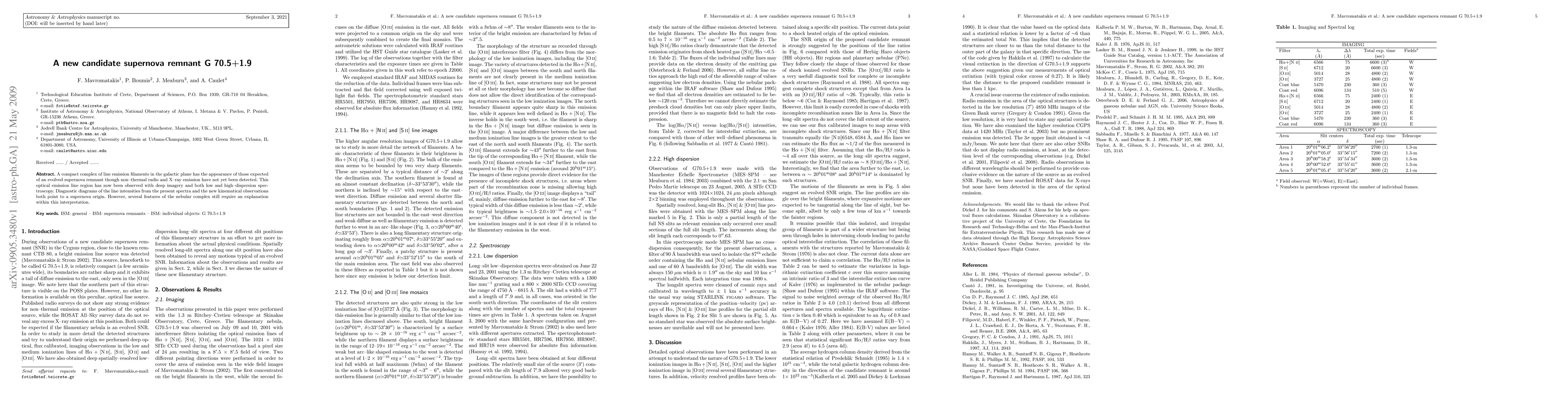 This study identifies a compact optical emission region resembling an evolved supernova remnant, though lacking non-thermal radio and X-ray emissions. Detailed spectroscopy and imaging support a supernova origin, though some features remain unexplained.