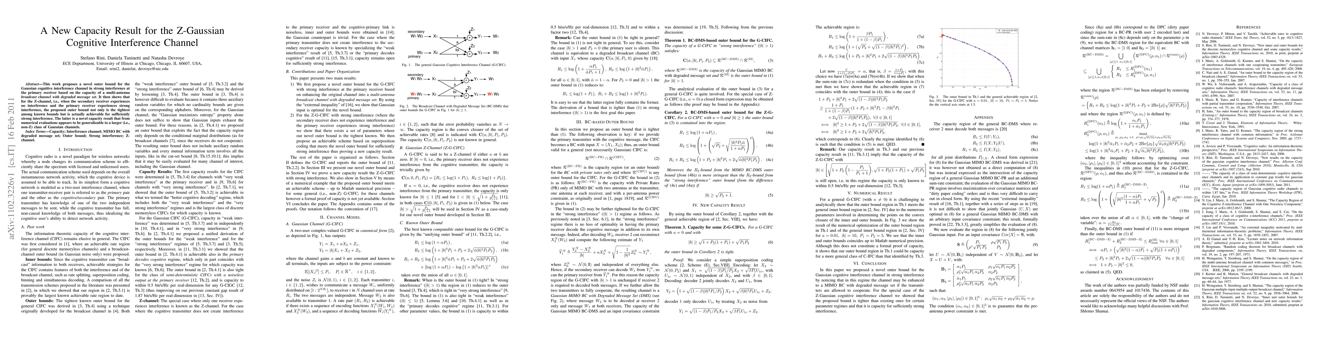 This work proposes a novel outer bound for the Gaussian cognitive interference channel in strong interference at the primary receiver based on the capacity of a multi-antenna broadcast channel with degraded message set. It then shows that for the Z-channel, i.e., when the secondary receiver experiences no interference and the primary receiver experiences strong interference, the proposed outer bound not only is the tightest among known bounds but is actually achievable for sufficiently strong interference. The latter is a novel capacity result that from numerical evaluations appears to be generalizable to a larger (i.e., non-Z) class of Gaussian channels.