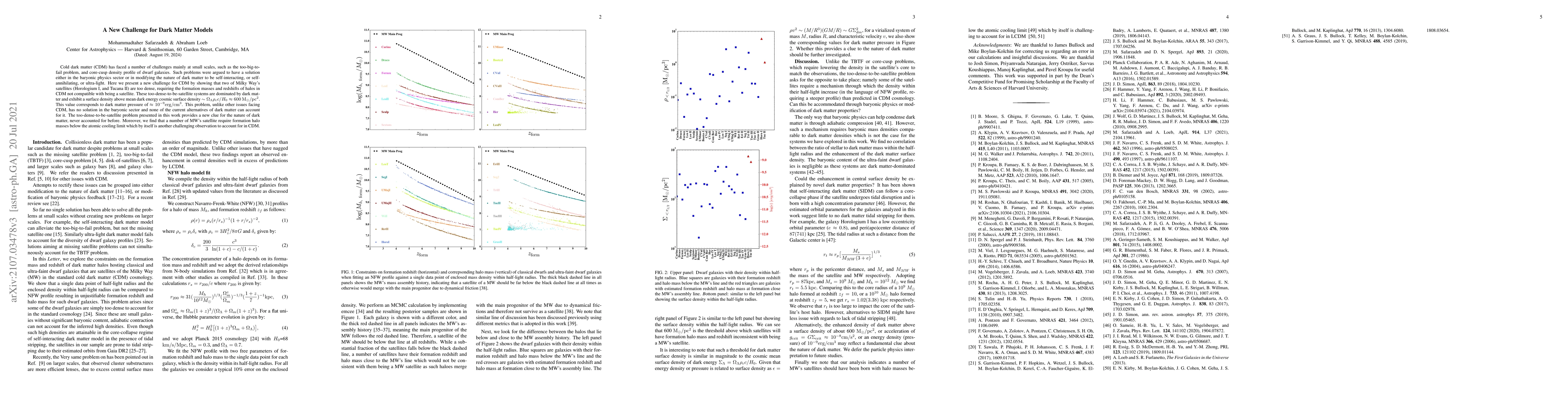 Newly discovered satellite galaxies of the Milky Way are too dense to be explained by current dark matter models, requiring a re-evaluation of dark matter properties.