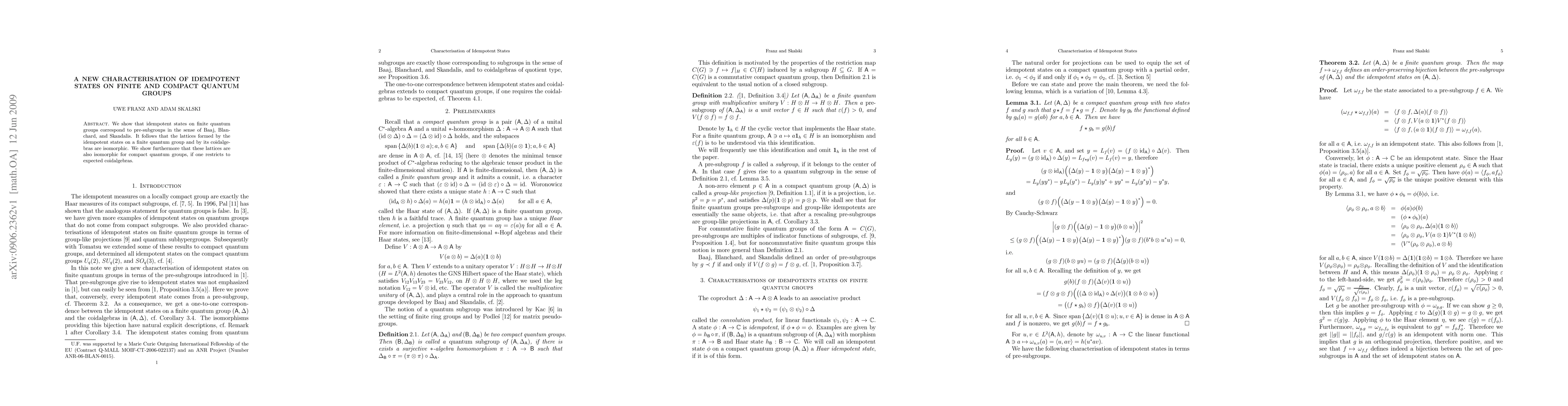 This paper establishes a correspondence between idempotent states on finite and compact quantum groups and pre-subgroups, proving that the lattices of idempotent states and coidalgebras are isomorphic, with a similar result for compact quantum groups when restricted to expected coidalgebras.
