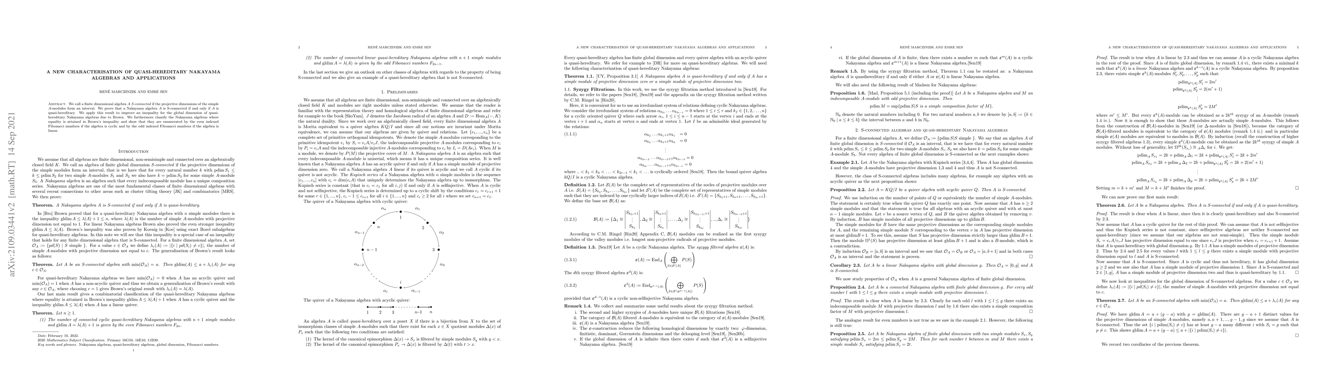 We call a finite dimensional algebra A S-connected if the projective dimensions of the simple A-modules form an interval. We prove that a Nakayama algebra A is S-connected if and only if A is quasi-hereditary. We apply this result to improve an inequality for the global dimension of quasi-hereditary Nakayama algebras due to Brown. We furthermore classify the Nakayama algebras where equality is attained in Brown's inequality and show that they are enumerated by the even indexed Fibonacci numbers if the algebra is cyclic and by the odd indexed Fibonacci numbers if the algebra is linear.