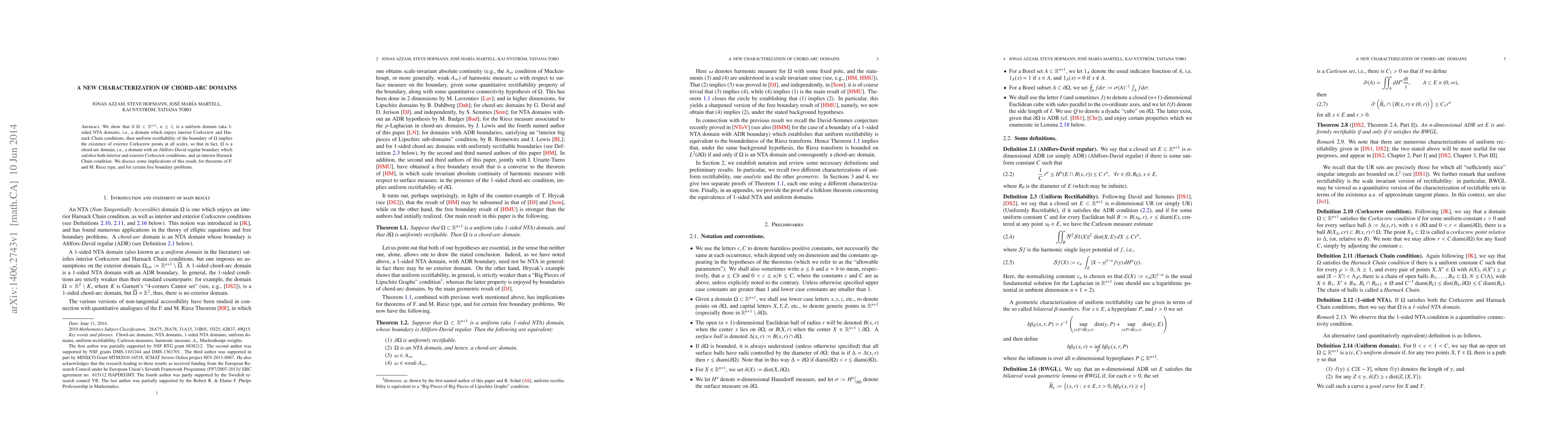 This research demonstrates that uniform domains, characterized by interior Corkscrew and Harnack Chain conditions, become chord-arc domains when their boundary is uniformly rectifiable. Chord-arc domains have Ahlfors-David regular boundaries and satisfy both interior and exterior Corkscrew conditions along with an interior Harnack Chain condition. The findings impact theorems of F. and M. Riesz and specific free boundary problems.