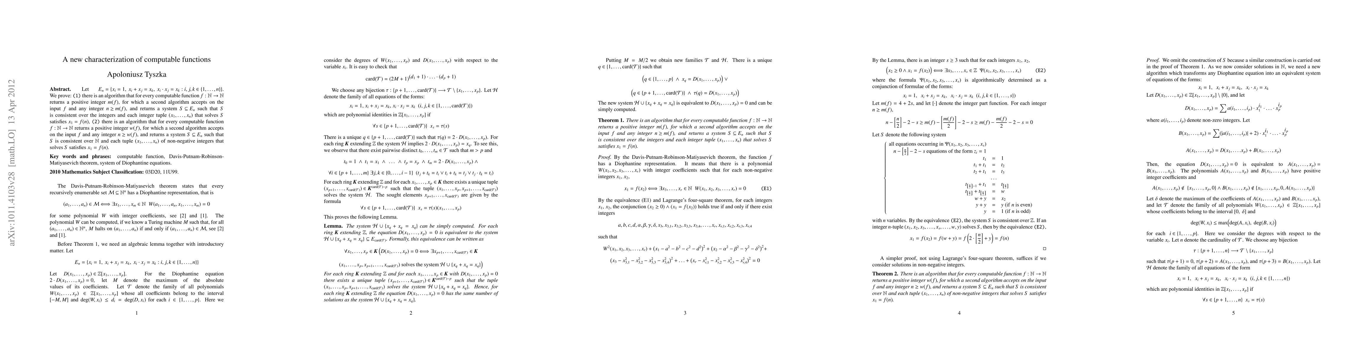 Let E_n={x_i=1, x_i+x_j=x_k, x_i*x_j=x_k: i,j,k \in {1,...,n}}. We prove: (1) there is an algorithm that for every computable function f:N-->N returns a positive integer m(f), for which a second algorithm accepts on the input f and any integer n>=m(f), and returns a system S \subseteq E_n such that S is consistent over the integers and each integer tuple (x_1,...,x_n) that solves S satisfies x_1=f(n), (2) there is an algorithm that for every computable function f:N-->N returns a positive integer w(f), for which a second algorithm accepts on the input f and any integer n>=w(f), and returns a system S \subseteq E_n such that S is consistent over N and each tuple (x_1,...,x_n) of non-negative integers that solves S satisfies x_1=f(n).
