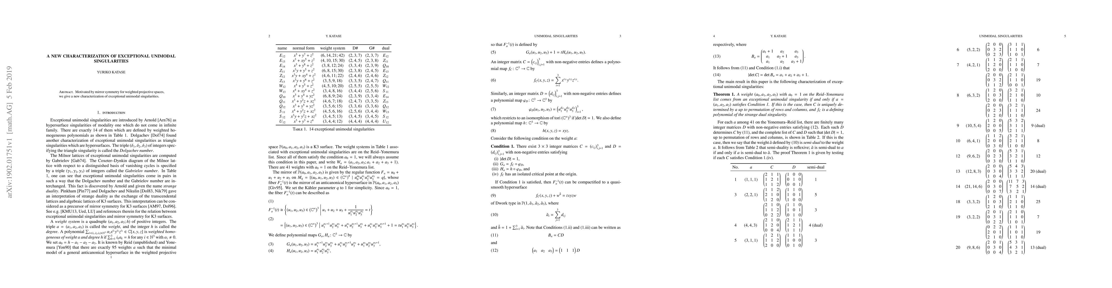 Summary: This paper presents a novel characterization of exceptional unimodal singularities, inspired by the principles of mirror symmetry in the context of weighted projective spaces. The new approach provides deeper insights into these mathematical structures.