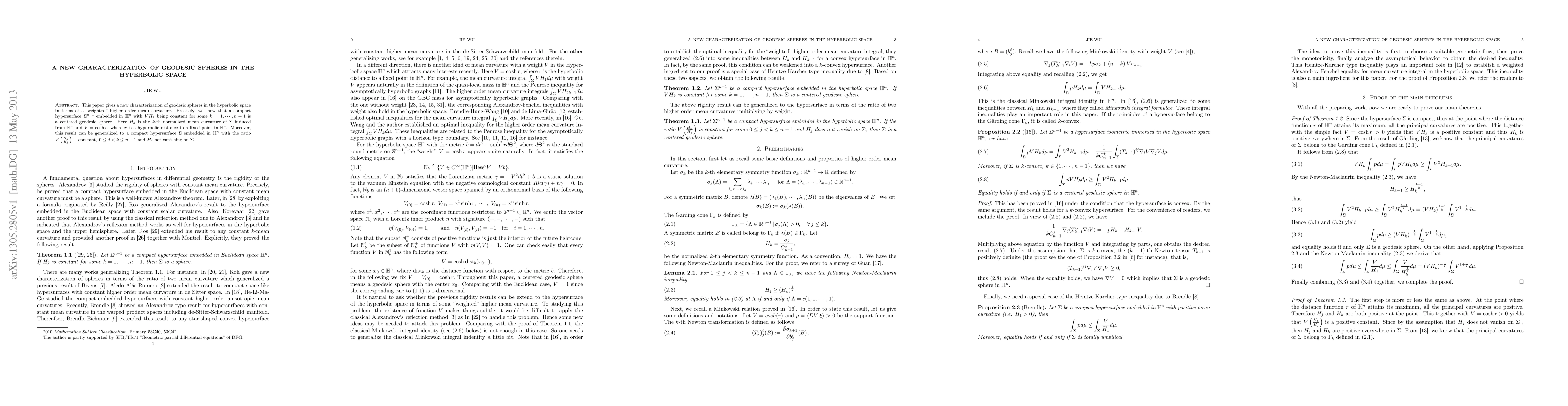 Researchers in hyperbolic space discovered a new way to identify geodesic spheres using weighted mean curvature, which can also generalize to other conditions on the surface.