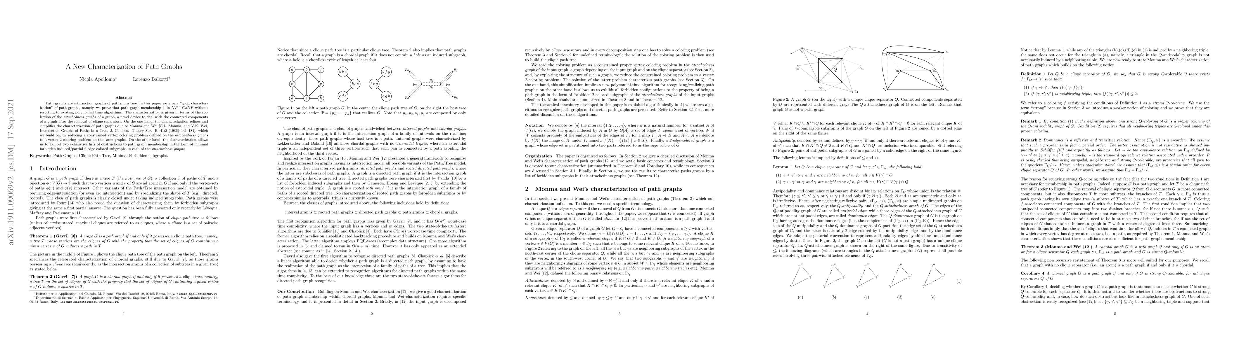 This paper provides a new characterization of path graphs, showing that membership is in NP ∩ CoNP, using attachedness graphs to simplify the problem, and identifying minimal forbidden subgraphs as obstructions to path graph membership.