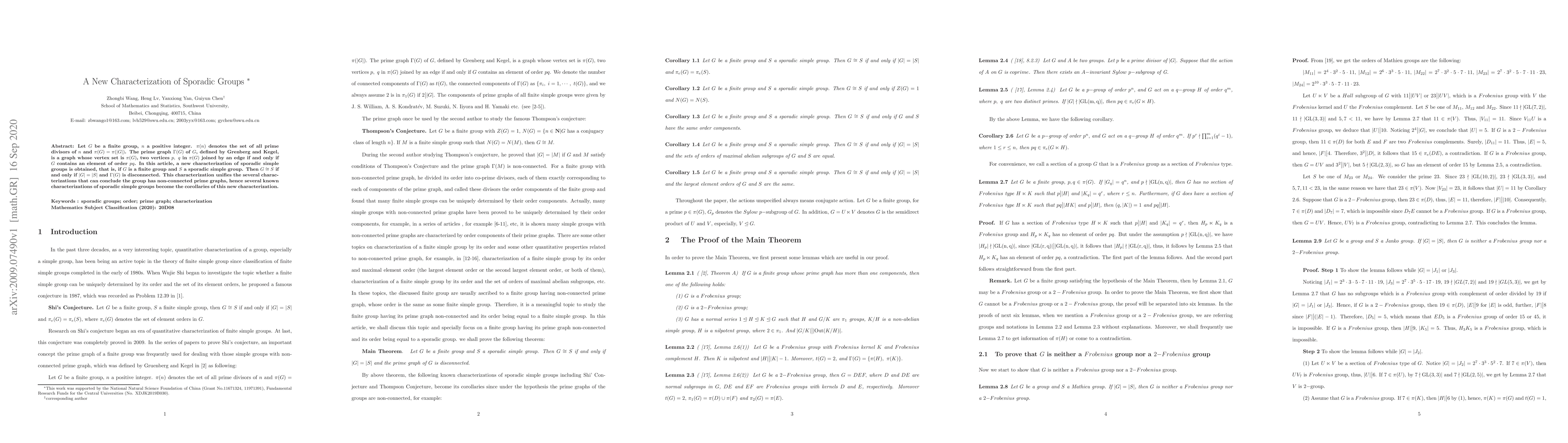 This paper introduces a new characterization of sporadic simple groups based on their prime graph properties. It concludes that a finite group $G$ is isomorphic to a sporadic simple group $S$ if and only if $|G|=|S|$ and $\Gamma(G)$ is disconnected, unifying previous characterizations.