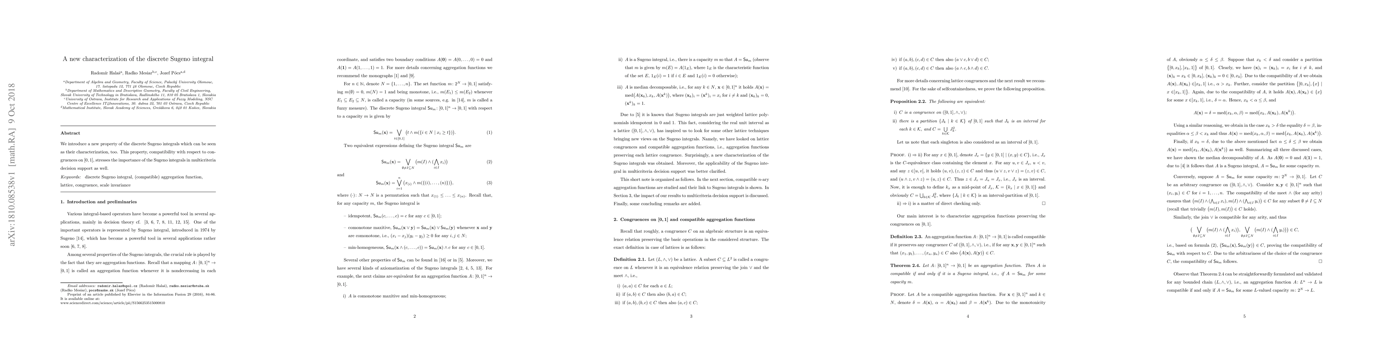 Summary: This paper presents a novel property characterizing the discrete Sugeno integral, emphasizing its congruence compatibility on $[0,1]$ and its significance in multicriteria decision support systems.