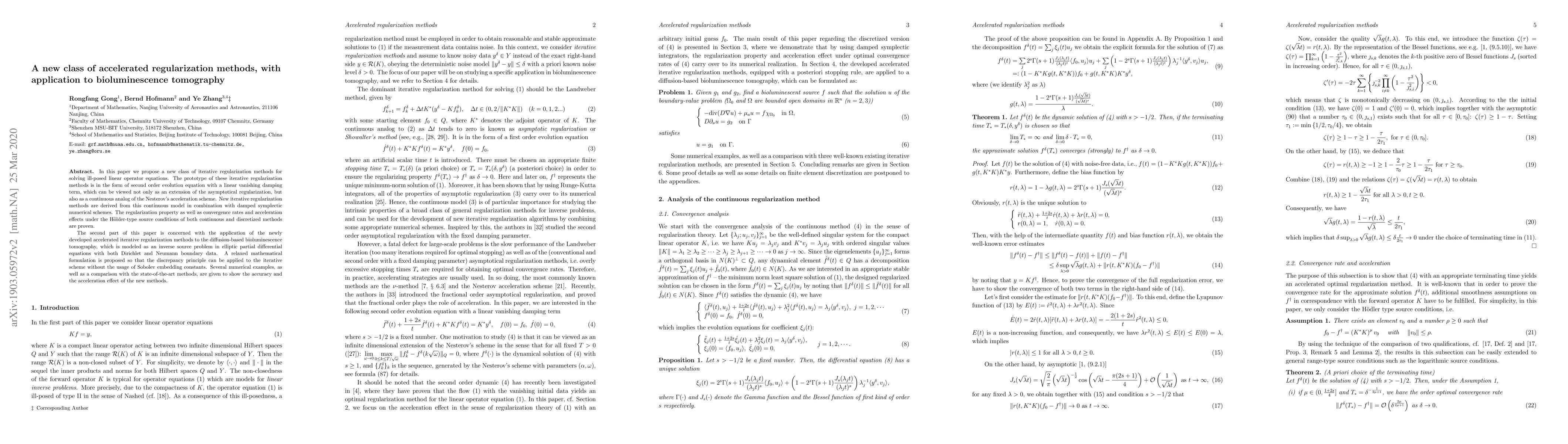 This paper introduces a new class of accelerated iterative regularization methods for solving ill-posed linear operator equations, extending asymptotic regularization and Nesterov's acceleration. The methods are applied to bioluminescence tomography, demonstrating improved accuracy and acceleration effects compared to existing techniques.