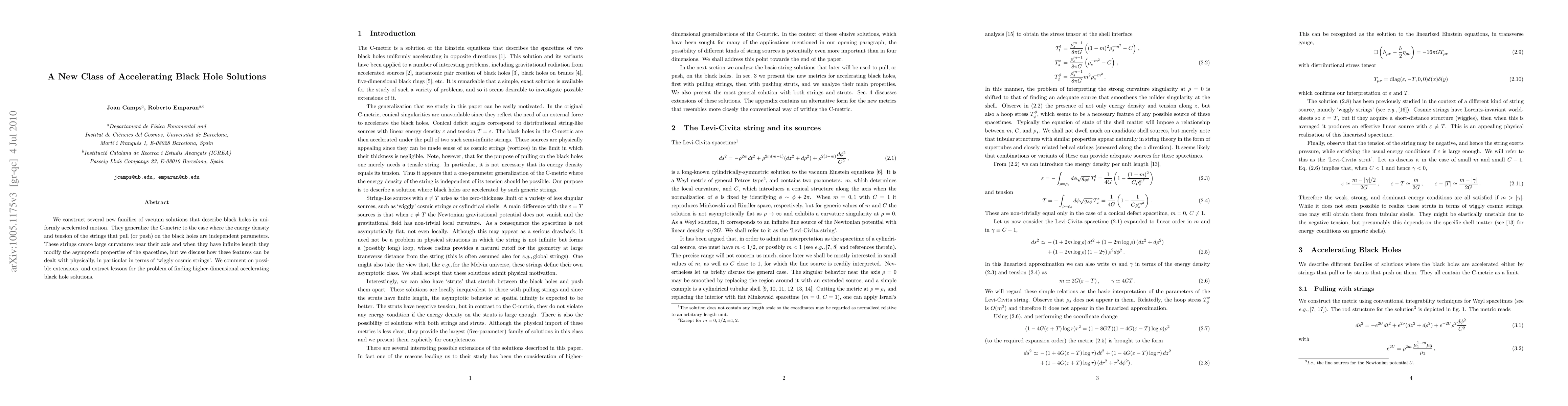 We construct several new families of vacuum solutions that describe black holes in uniformly accelerated motion. They generalize the C-metric to the case where the energy density and tension of the strings that pull (or push) on the black holes are independent parameters. These strings create large curvatures near their axis and when they have infinite length they modify the asymptotic properties of the spacetime, but we discuss how these features can be dealt with physically, in particular in terms of `wiggly cosmic strings'. We comment on possible extensions, and extract lessons for the problem of finding higher-dimensional accelerating black hole solutions.