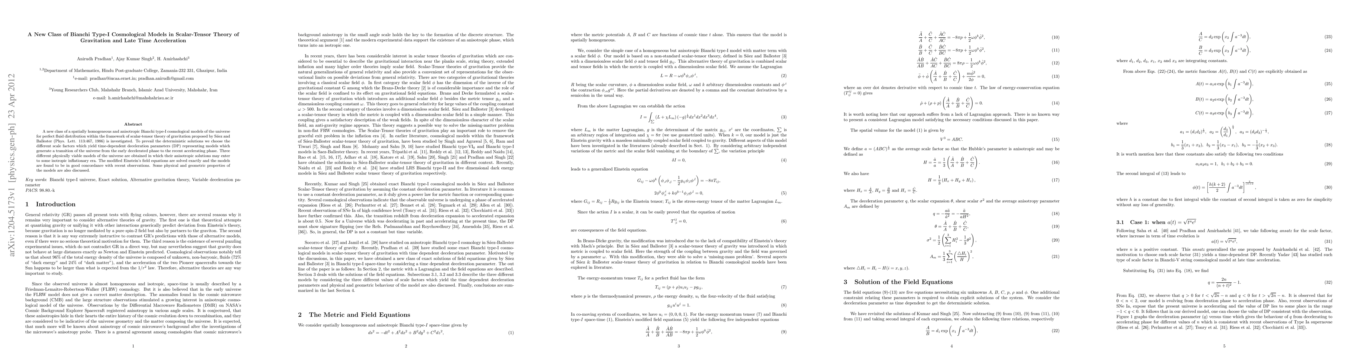 This paper investigates new spatially homogeneous and anisotropic Bianchi type-I cosmological models within scalar-tensor theory, showing transitions from early deceleration to late-time acceleration, with solutions consistent with observational data. The models explore potential inflationary phases and discuss their physical and geometric properties.