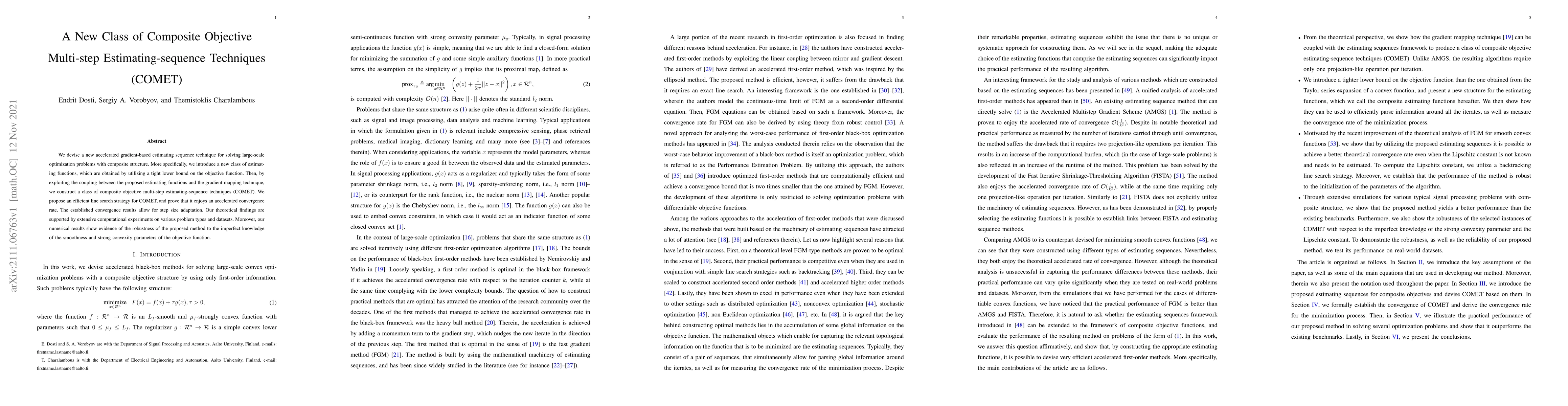We devise a new accelerated gradient-based estimating sequence technique for solving large-scale optimization problems with composite structure. More specifically, we introduce a new class of estimating functions, which are obtained by utilizing a tight lower bound on the objective function. Then, by exploiting the coupling between the proposed estimating functions and the gradient mapping technique, we construct a class of composite objective multi-step estimating-sequence techniques (COMET). We propose an efficient line search strategy for COMET, and prove that it enjoys an accelerated convergence rate. The established convergence results allow for step size adaptation. Our theoretical findings are supported by extensive computational experiments on various problem types and datasets. Moreover, our numerical results show evidence of the robustness of the proposed method to the imperfect knowledge of the smoothness and strong convexity parameters of the objective function.