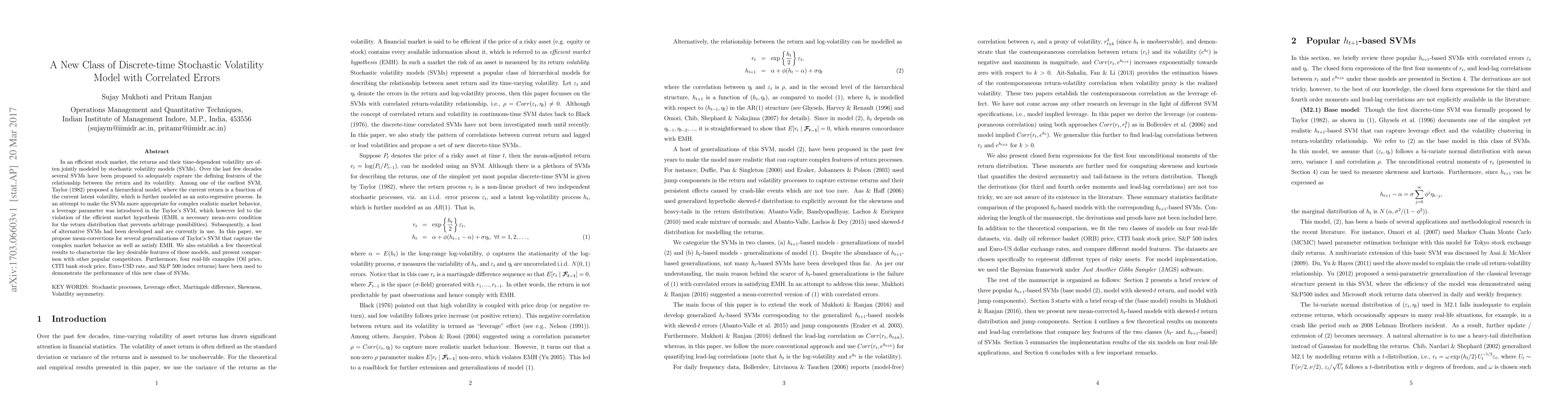 In an efficient stock market, the returns and their time-dependent volatility are often jointly modeled by stochastic volatility models (SVMs). Over the last few decades several SVMs have been proposed to adequately capture the defining features of the relationship between the return and its volatility. Among one of the earliest SVM, Taylor (1982) proposed a hierarchical model, where the current return is a function of the current latent volatility, which is further modeled as an auto-regressive process. In an attempt to make the SVMs more appropriate for complex realistic market behavior, a leverage parameter was introduced in the Taylor SVM, which however led to the violation of the efficient market hypothesis (EMH, a necessary mean-zero condition for the return distribution that prevents arbitrage possibilities). Subsequently, a host of alternative SVMs had been developed and are currently in use. In this paper, we propose mean-corrections for several generalizations of Taylor SVM that capture the complex market behavior as well as satisfy EMH. We also establish a few theoretical results to characterize the key desirable features of these models, and present comparison with other popular competitors. Furthermore, four real-life examples (Oil price, CITI bank stock price, Euro-USD rate, and S&P 500 index returns) have been used to demonstrate the performance of this new class of SVMs.