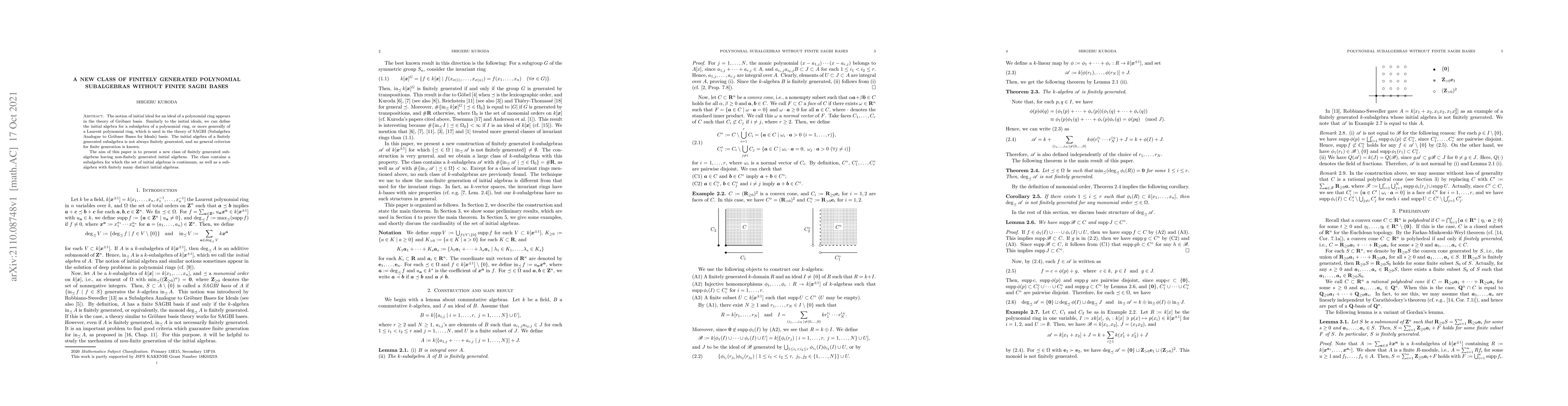 This paper introduces a new class of finitely generated polynomial subalgebras that lack finite SAGBI bases due to their non-finitely generated initial algebras. It demonstrates both a class with a continuum of initial algebras and another with a finite number of distinct initial algebras.