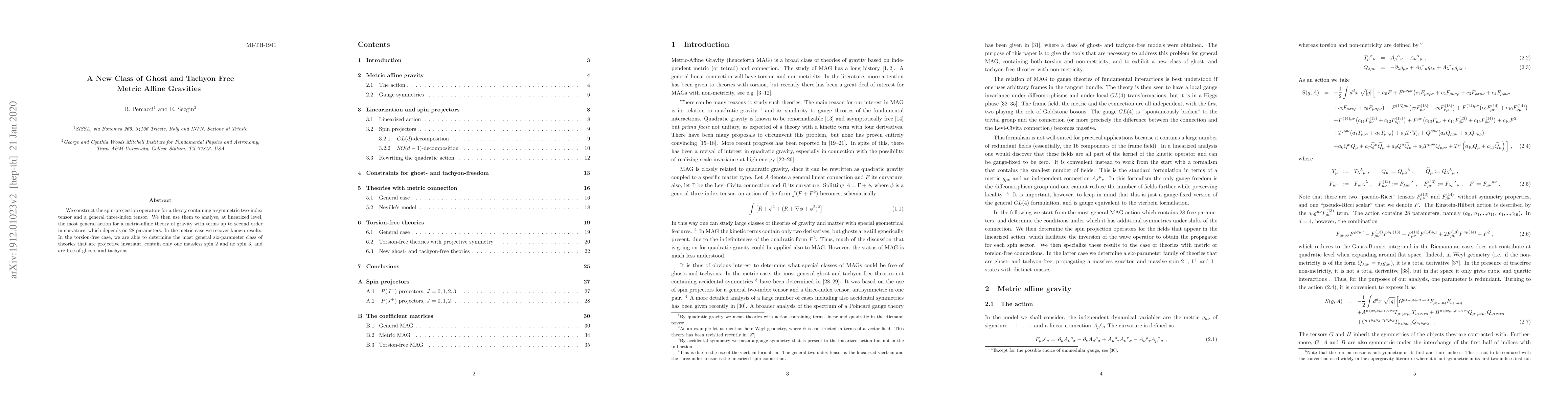 We construct the spin-projection operators for a theory containing a symmetric two-index tensor and a general three-index tensor. We then use them to analyse, at linearized level, the most general action for a metric-affine theory of gravity with terms up to second order in curvature, which depends on 28 parameters. In the metric case we recover known results. In the torsion-free case, we are able to determine the most general six-parameter class of theories that are projective invariant, contain only one massless spin 2 and no spin 3, and are free of ghosts and tachyons.